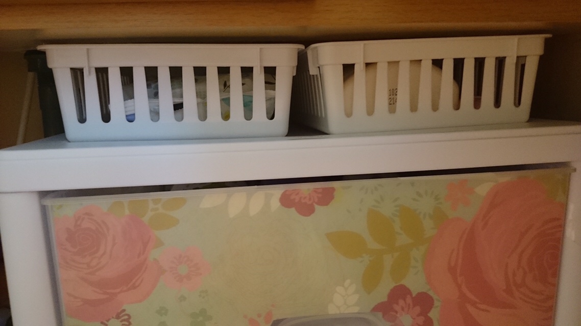 I put two baskets atop the drawers for baby wipes and extra toiletries.