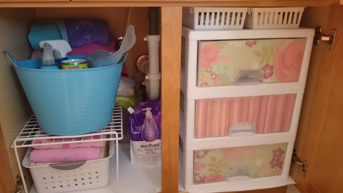 Our daughters’ bathroom needed some serious organization beneath the sink.