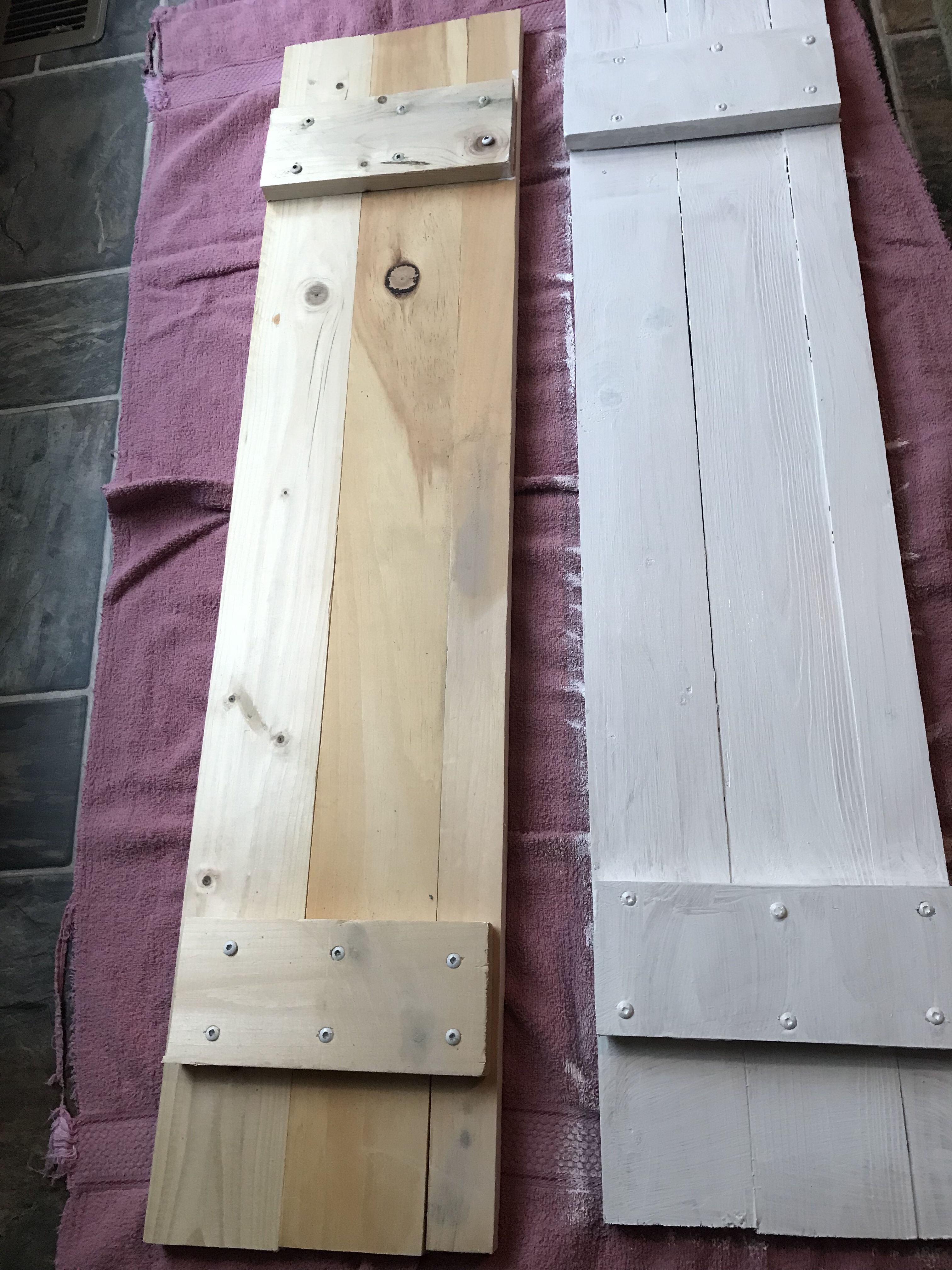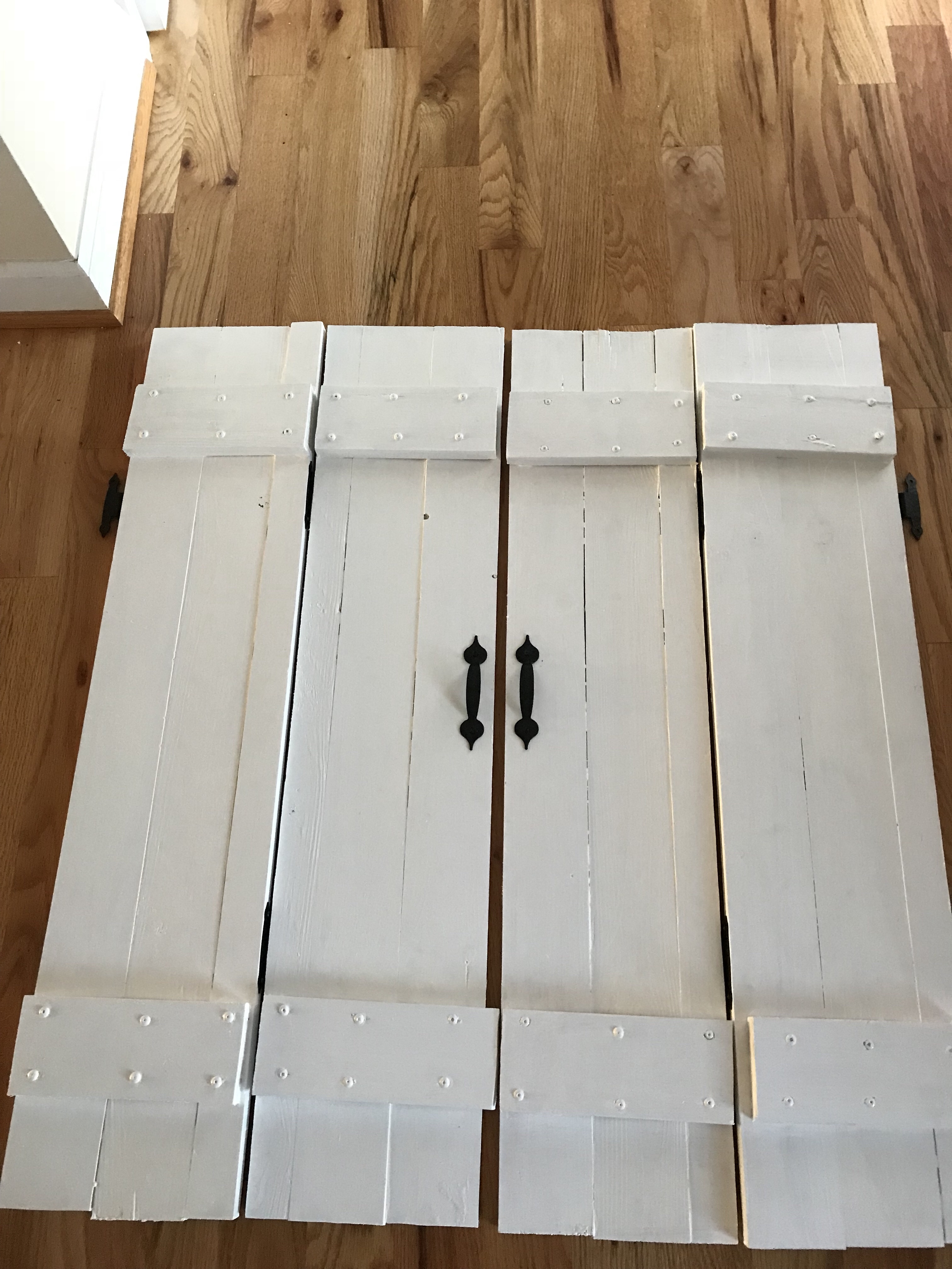 I constructed four shutters with crossbars like this: