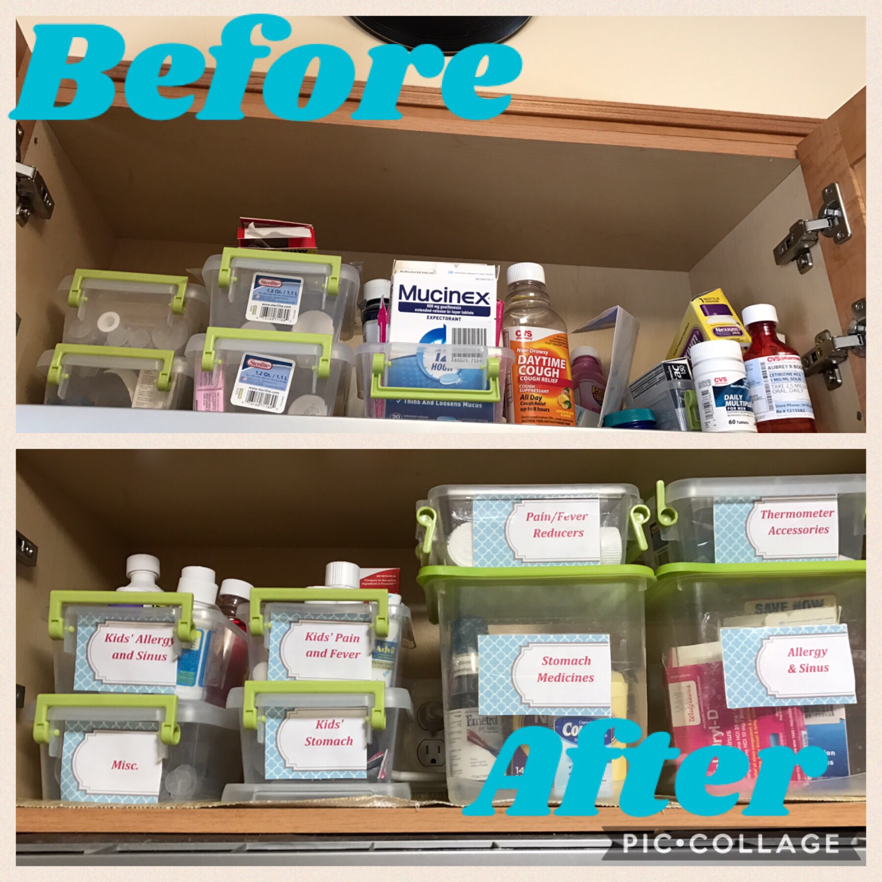 And I threw away and/or donated any outgrown baby items and straightened the girls’ cabinets.