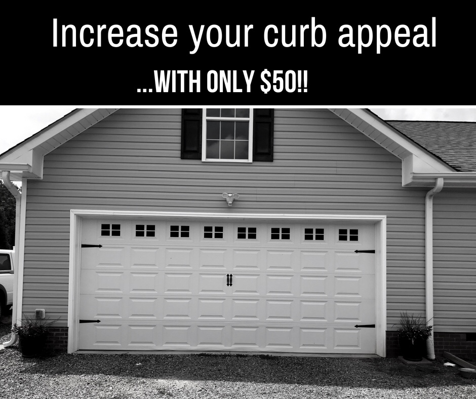 Our garage door was big, white and booorrrring. I’ve been crushing on Coach house garage doors since forever, but because they run in the upwards of $2,000, they aren’t exactly in the budget right now.