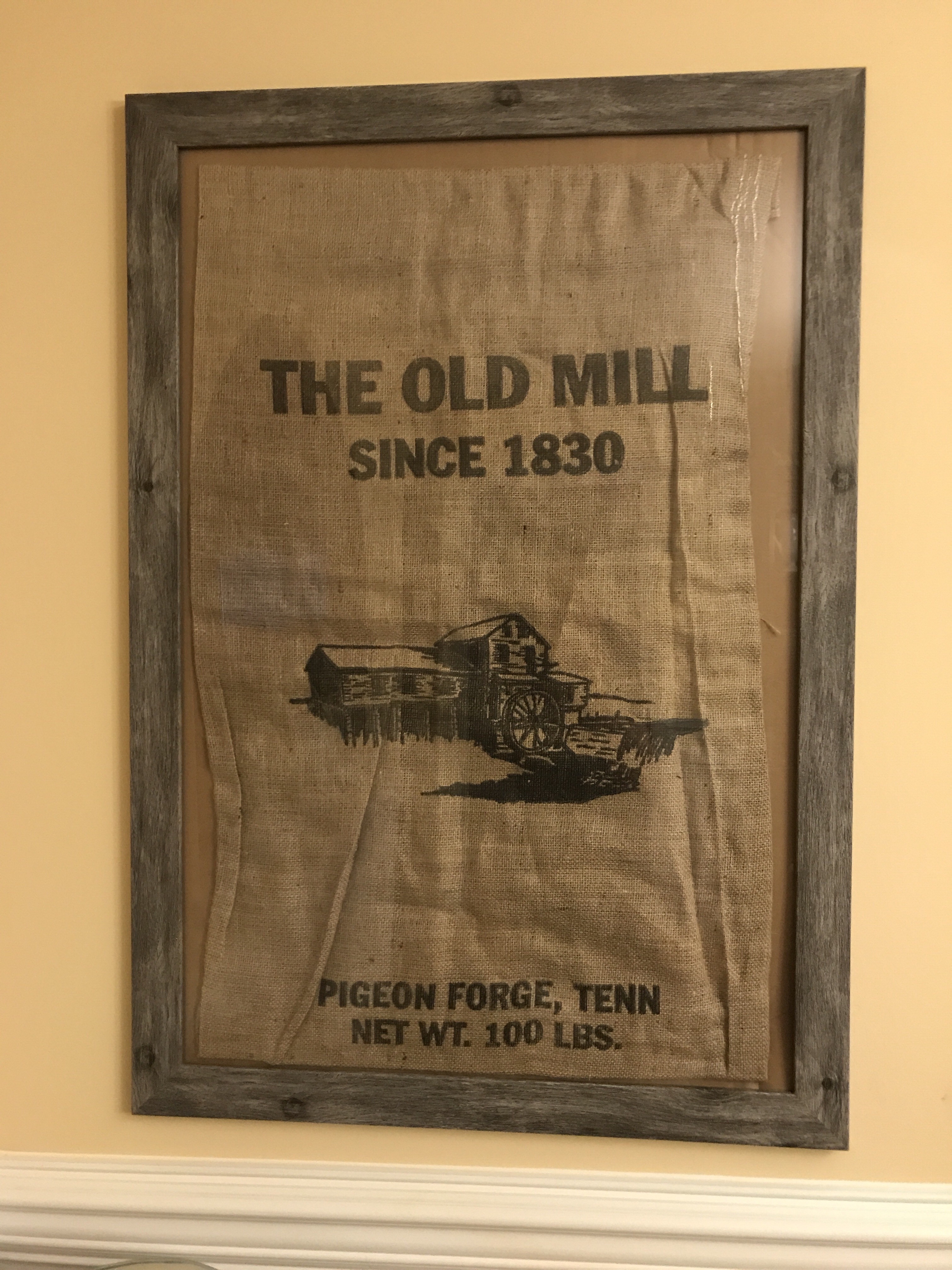 You can probably guess what happened next… I popped one of those burlap sheets into my printer, printed that grain sack on it, and popped it into a frame. The result?