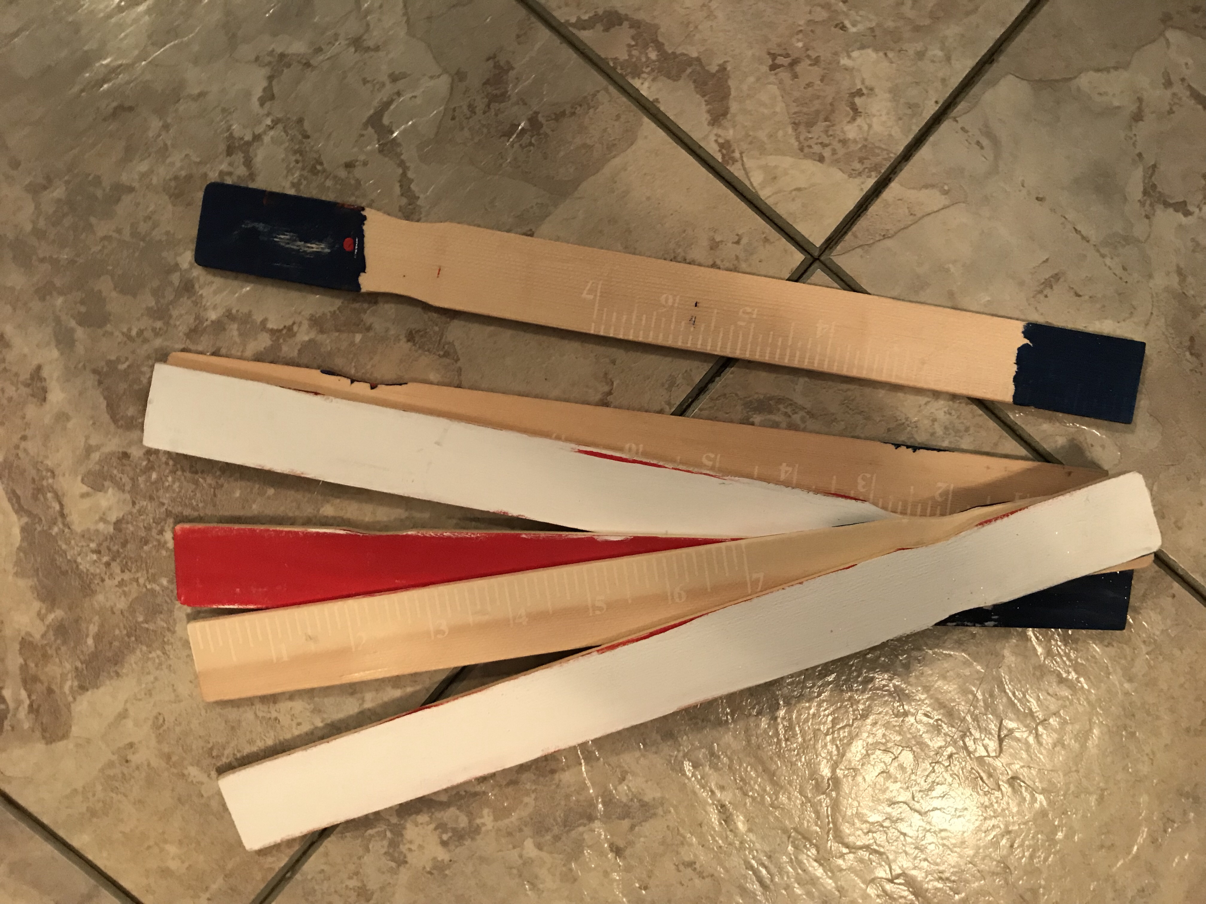I started by taking the flag apart. See the paint? I didn’t bother taking the paint off since the sticks would be covered with burlap.