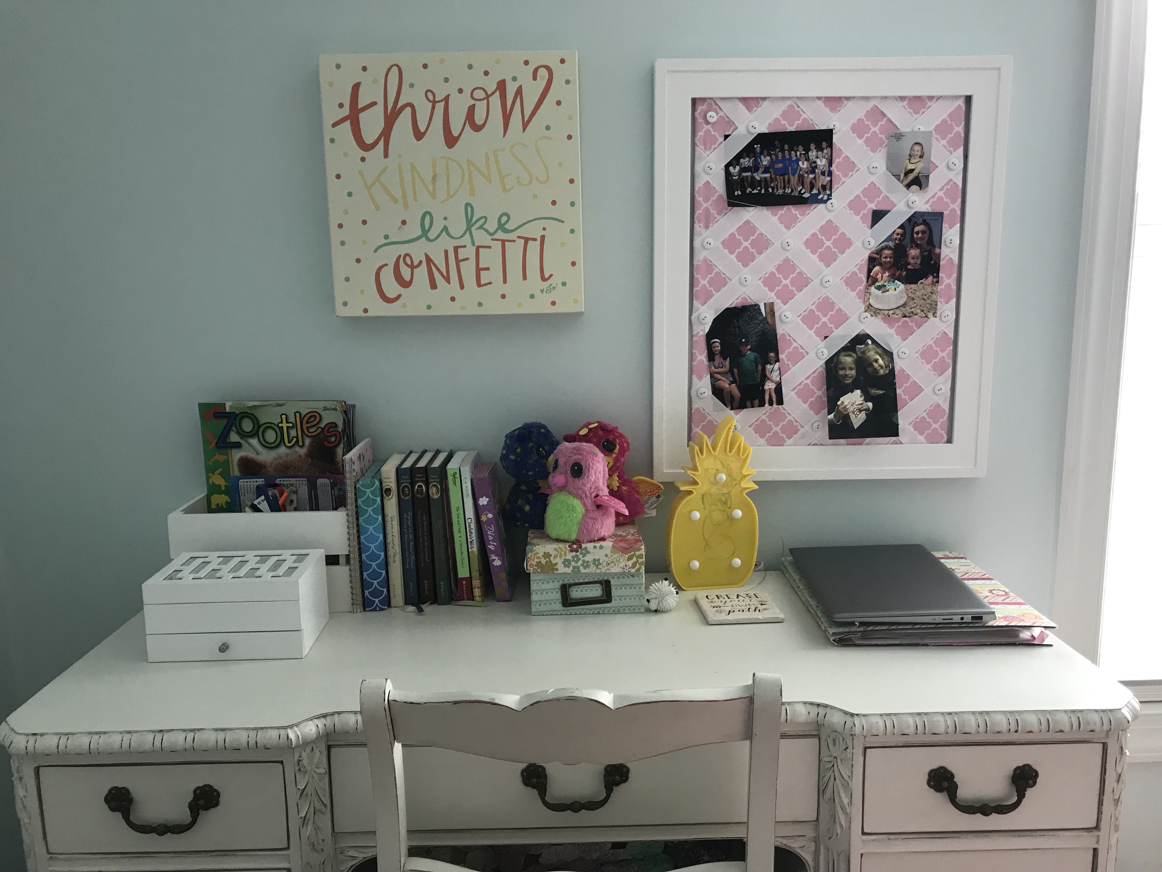 My daughter needed a quiet, well-lit and organized place to study and do homework. We bought her this desk off Craigslist some time ago, but we never really decorated or did anything to make it inviting.
