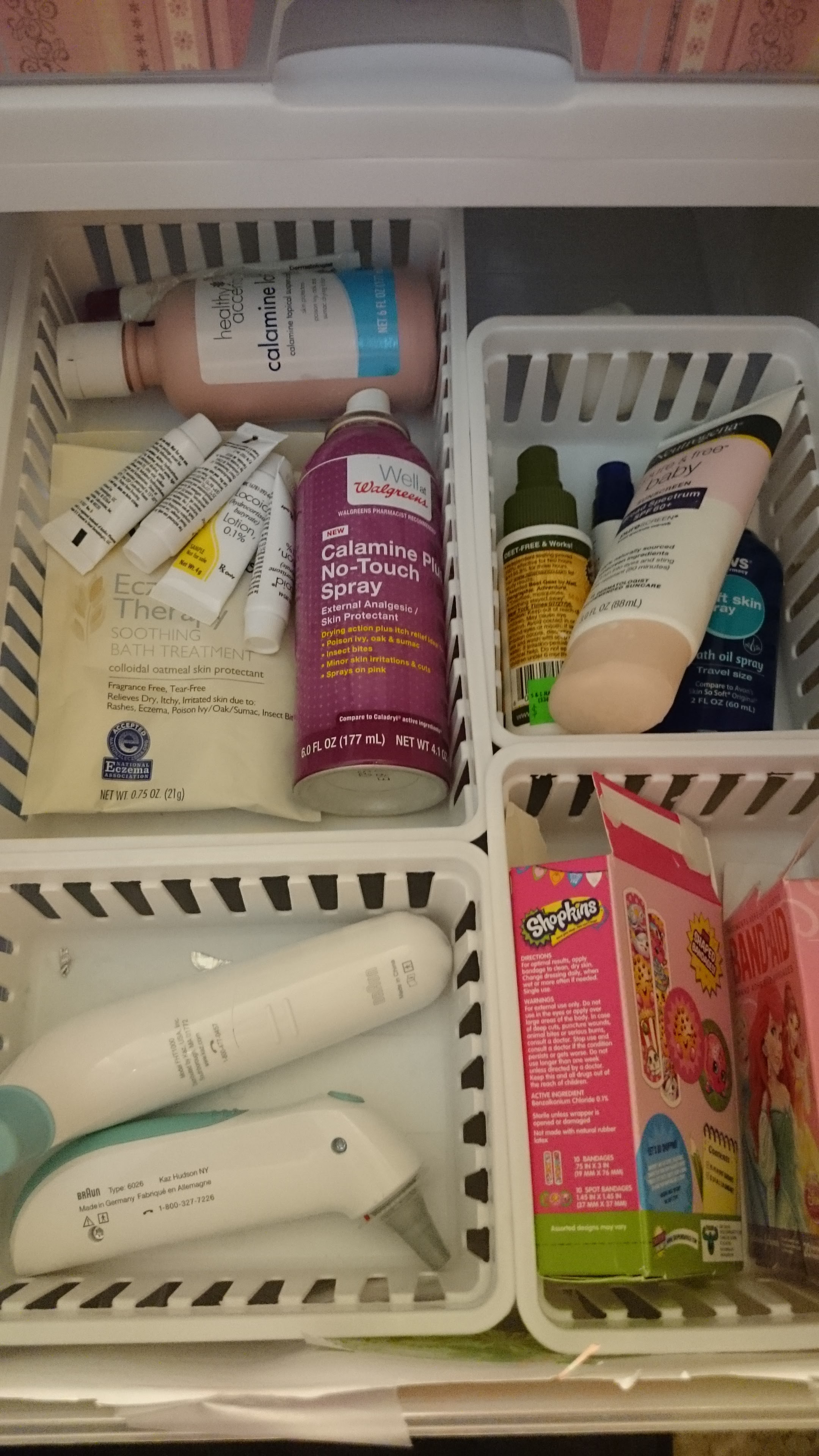 And if you’re wondering what the inside of the drawers look like, they hold various toiletry items for the girls and they look like this: