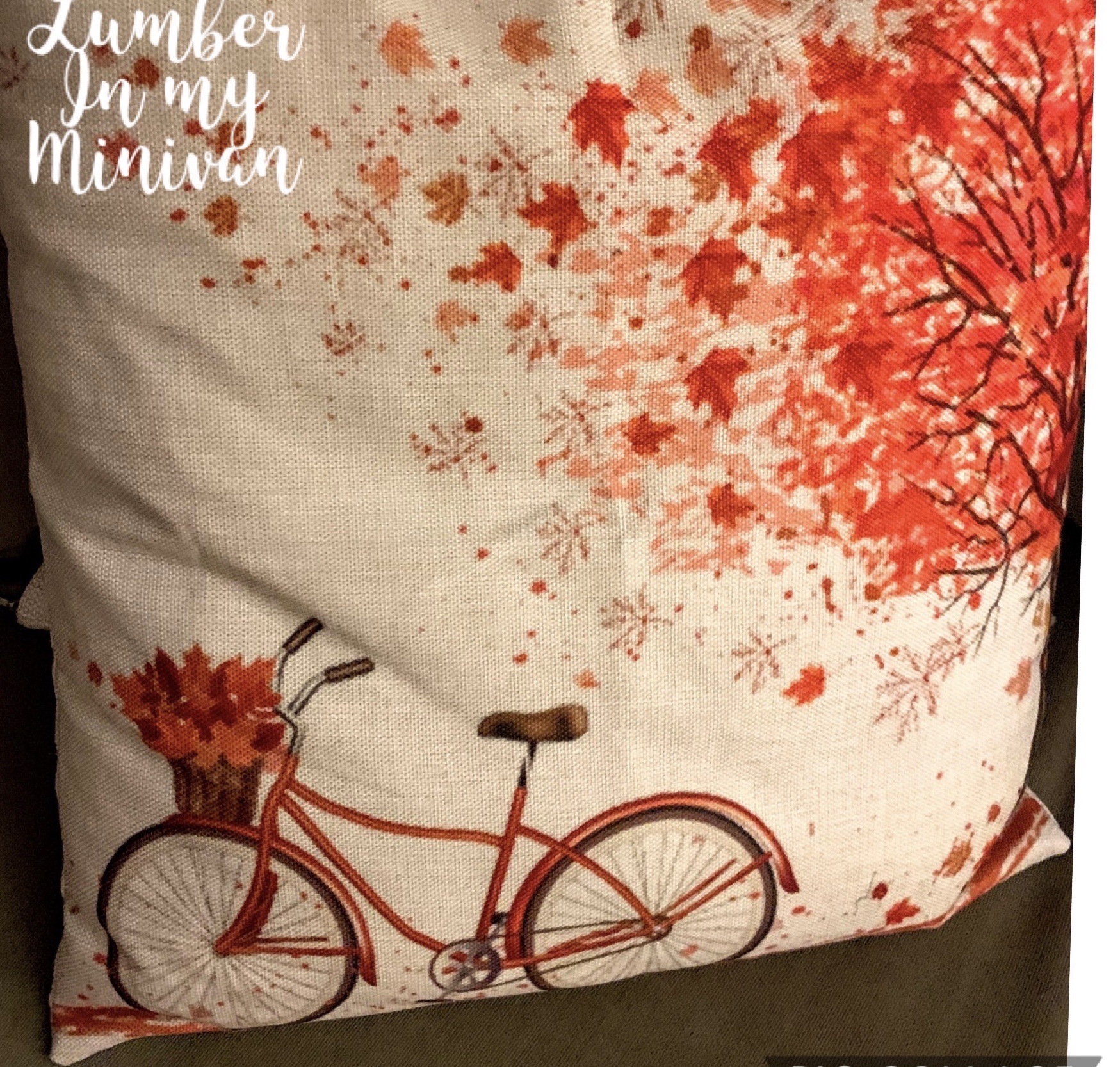 Our living room is full of pumpkins, sunflowers, bittersweet and candles. I especially love these sweet fall pillows I ordered online last year.
