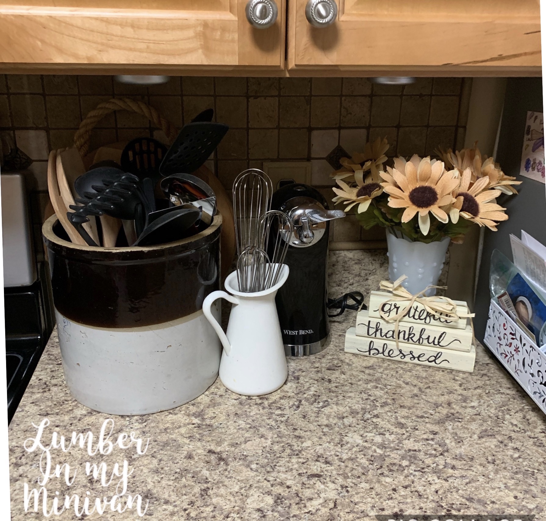 I am loving our fall table runner and the fall potpourri I put in our bread bowl. It smells so good!