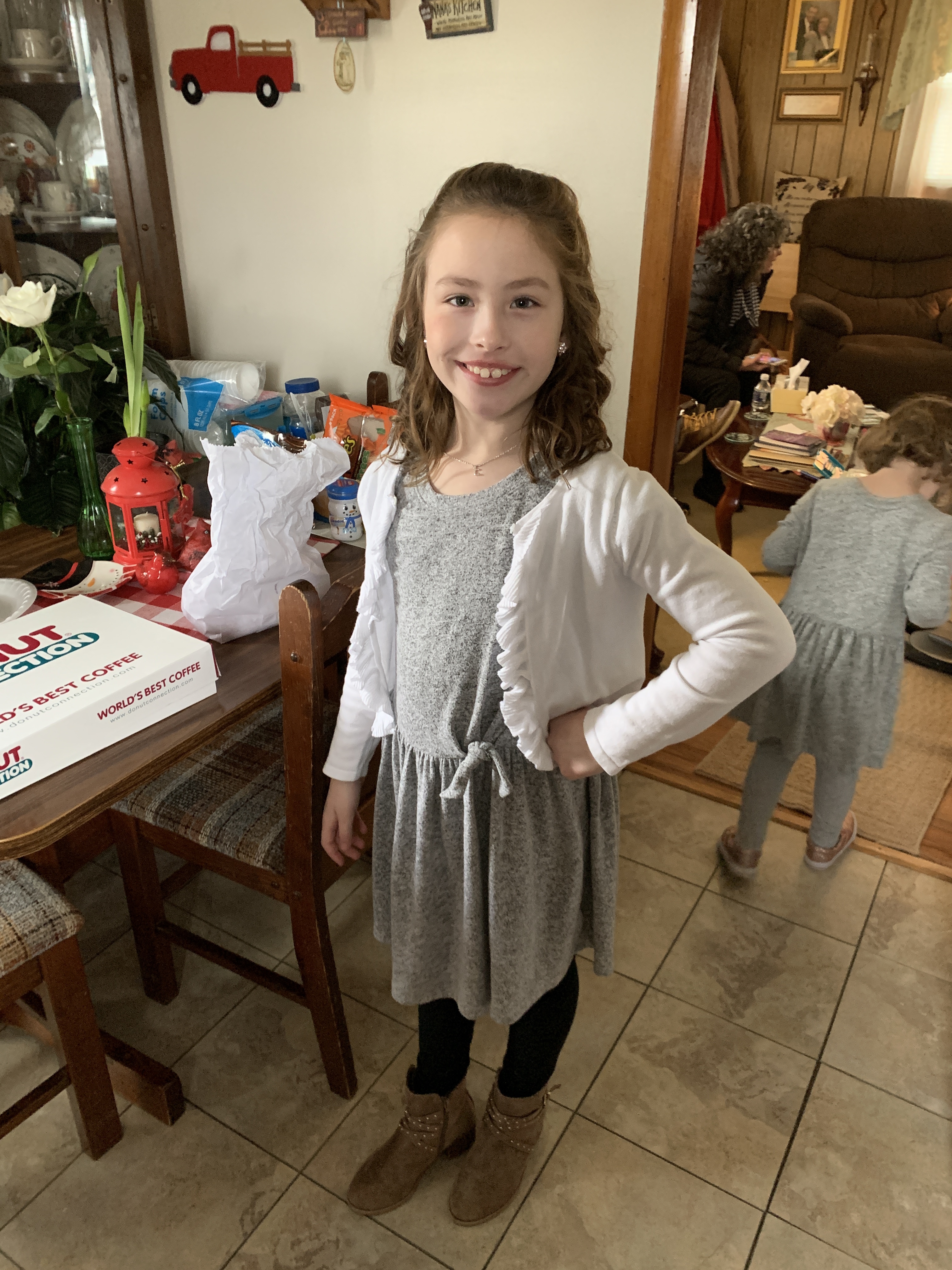 My girls dressed alike and looked adorable when we went to church with my grandmother. The littlest lumber didn’t want to participate in the photo festivities. 🤷♀️