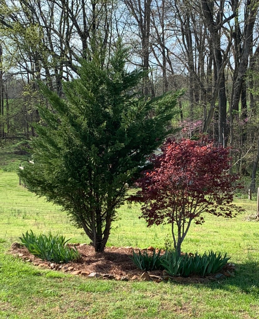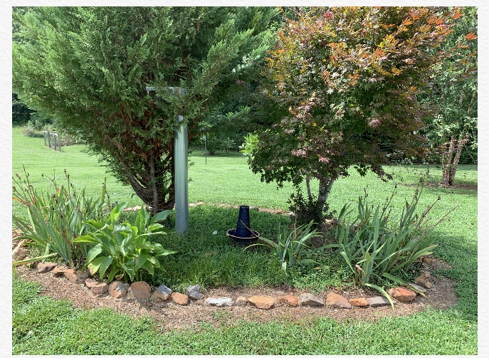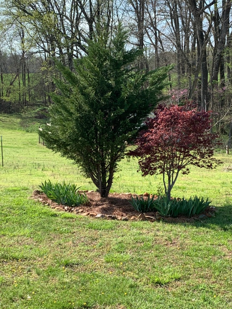 Then, we removed the broken birdbath and took that thing to the dump. We trimmed the trees and pulled all the weeds. That took awhile. Lastly, we put down some fresh pine straw.