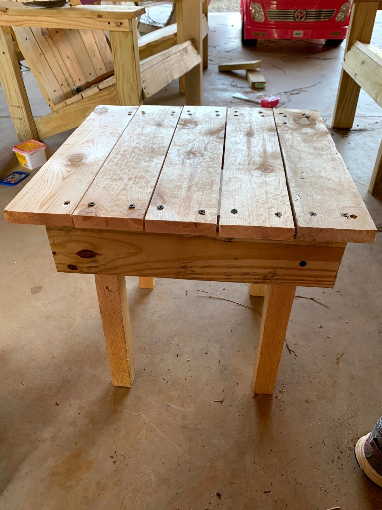 And what is a group of Adirondack chairs without a side table? I truly did challenge myself with this one, as I did not use any kind of plan. I simply figured out how big I wanted the table and went from there. I didn’t really think I’d need a plan, as a table really isn’t hard to build.
