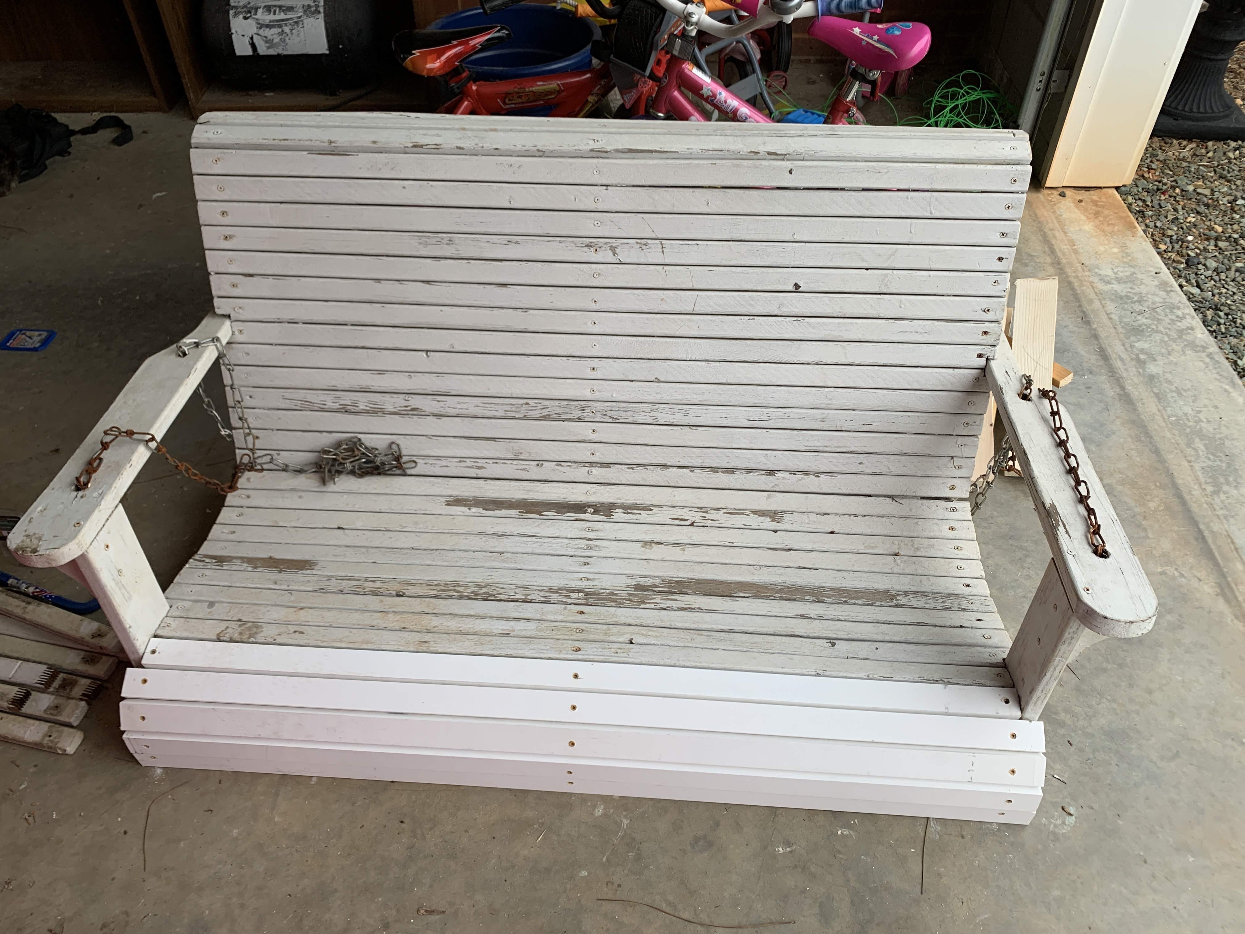 As you can imagine, 15 years in a damp basement takes its toll. We had several rotten slats and a rusted chain. We were blessed the frame was still in good shape .