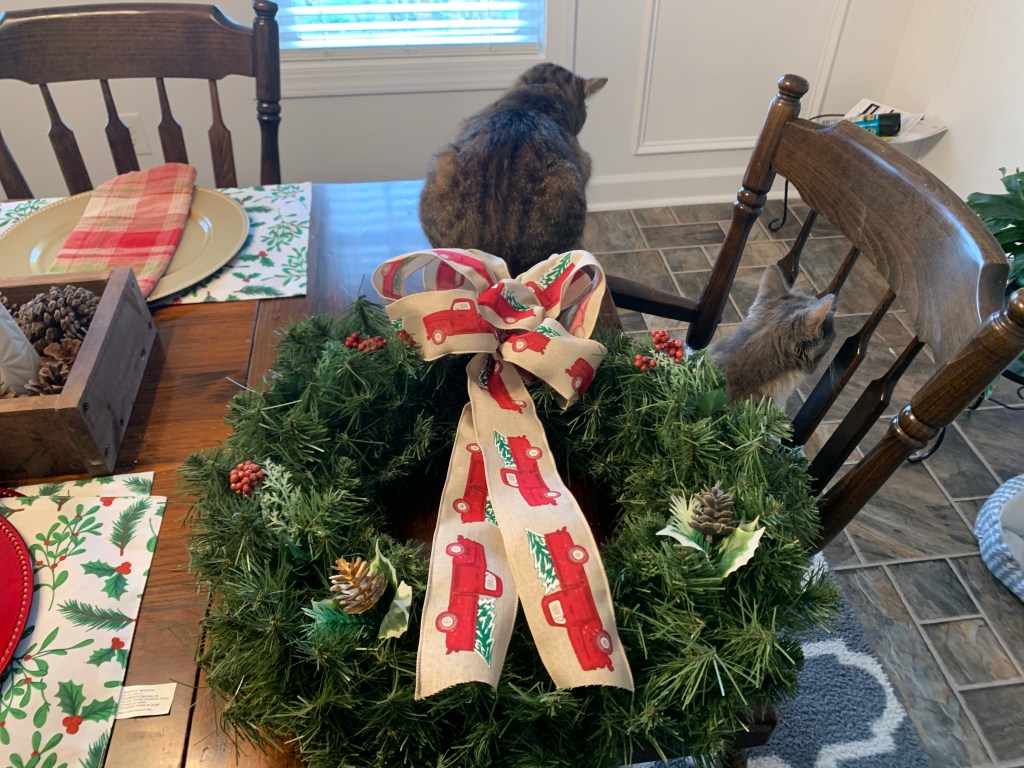 Cute feline crafting assistants are optional but highly encouraged. Just don’t let them eat your wreath.
