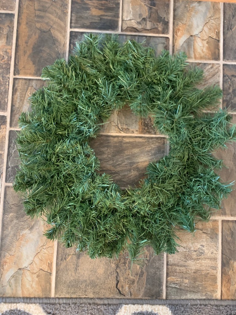 I had some Christmas things lying around that I wanted to use up. For some reason, I had two cheap, thin wreaths lying around. I don’t remember why I bought these but they have been here forever.