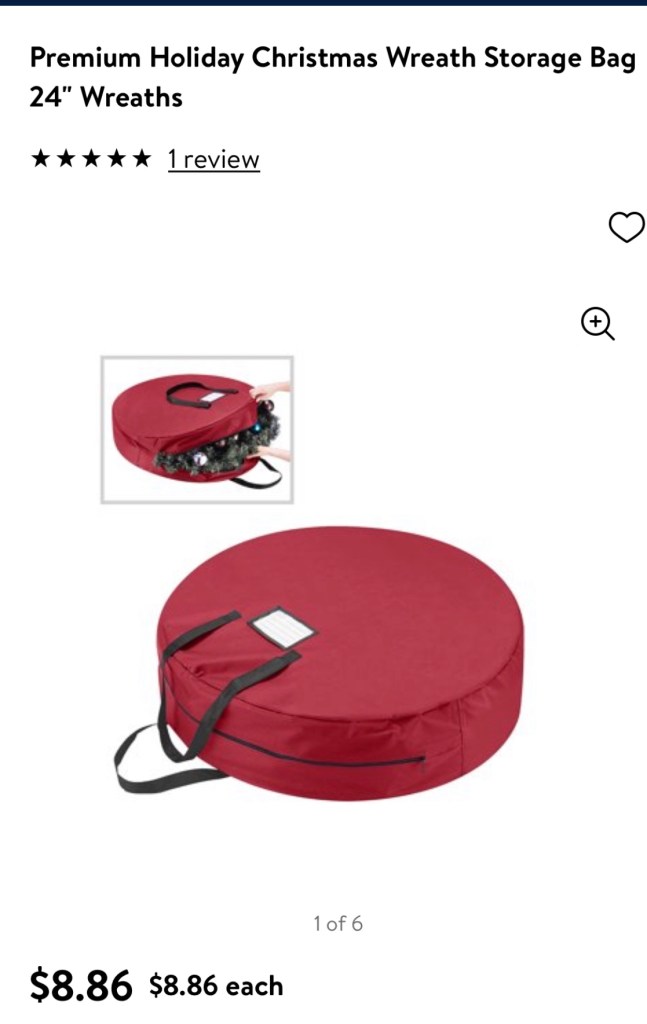 If you’re like us, you have a bunch of wreaths. If you’re fortunate to have the space, you can always just hang them on the wall, but if space is at a premium, you can use a wreath box or bag. We have this wreath bag.
