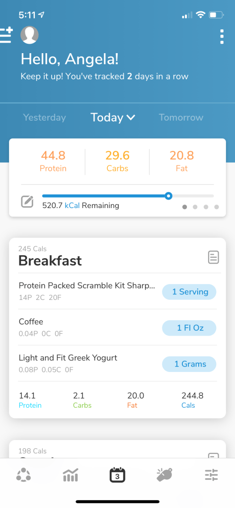 Take charge of your diet and fitness by keeping track of your daily food intake with My Macros! I have used this app for about a year and a half now and I love how easy it is to track my calories, fats, carbs and proteins. I highly recommend it.