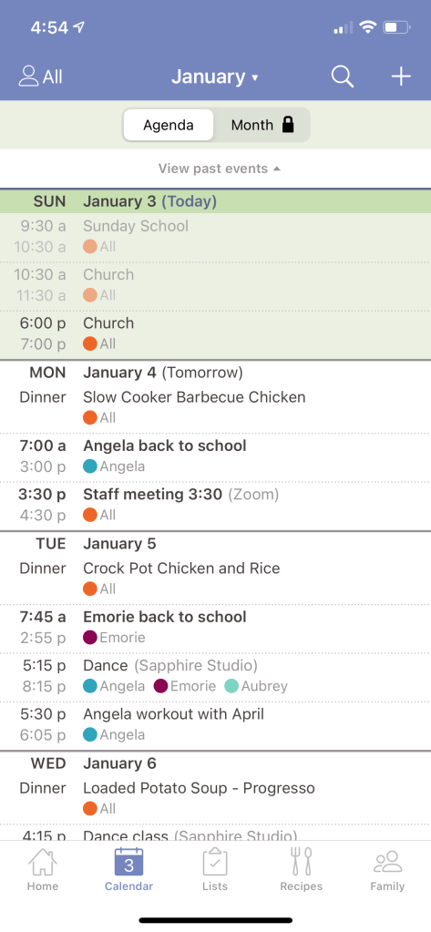 Do you have two or more children with several activities on the calendar? Do you struggle to plan meals, keep track of schedules and to-do lists? Cozi is for you!! We use it to catalog recipes, share shopping lists and keep track of schedules via the calendar feature. Each week, it emails all members of your family the events for the week.