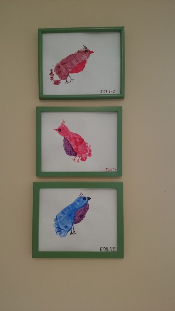 These feet birds make a cute keepsake so you can remember when your littles were small, or you can give them to the grandparents.