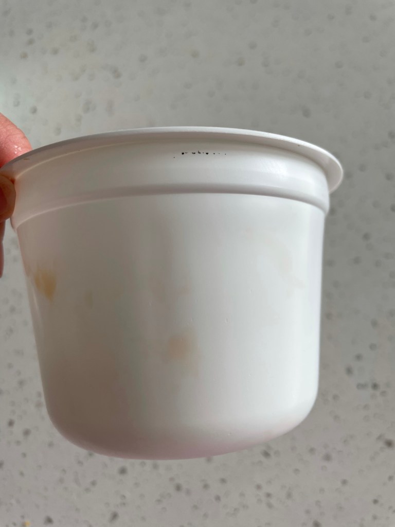 I must have about a hundred of these. And yogurt cups! I decided to peel the labels off and wash them out.