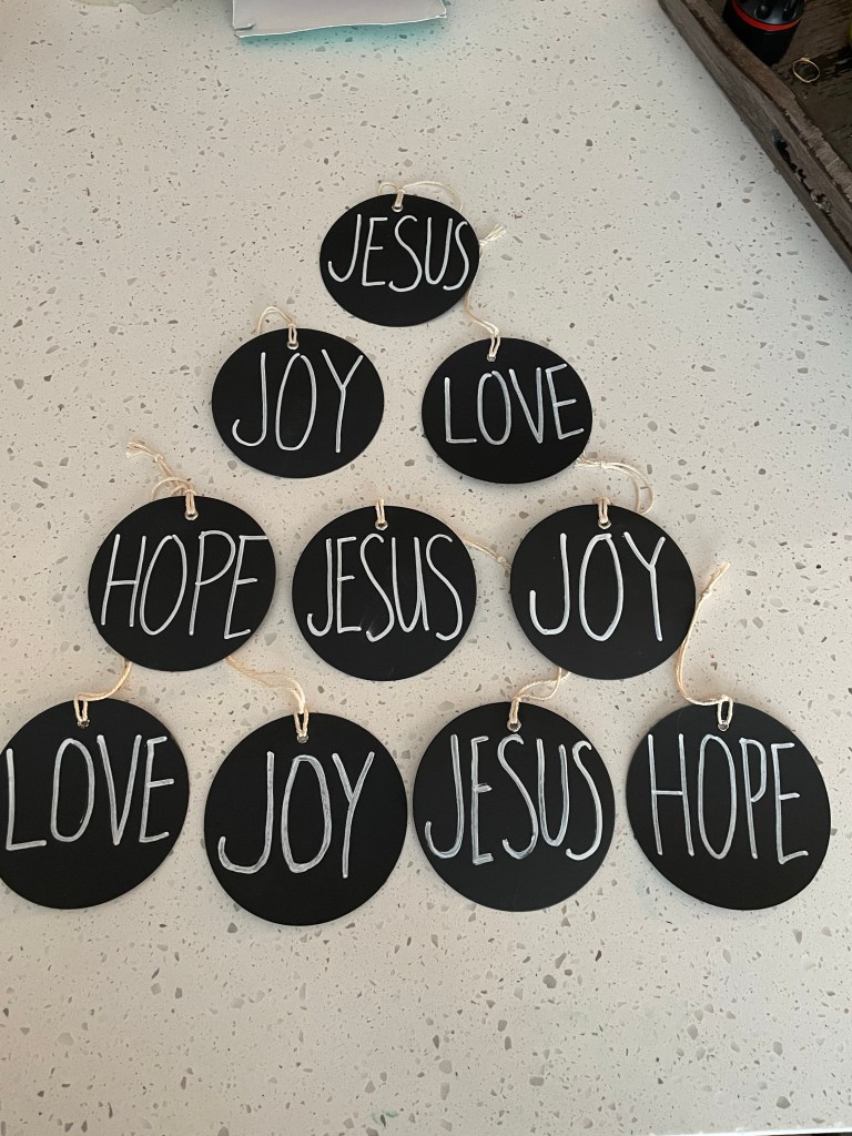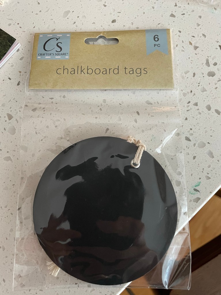 Our Dollar Tree has a pretty epic craft section. I found this pack of “chalkboard” tags when I visited last week.