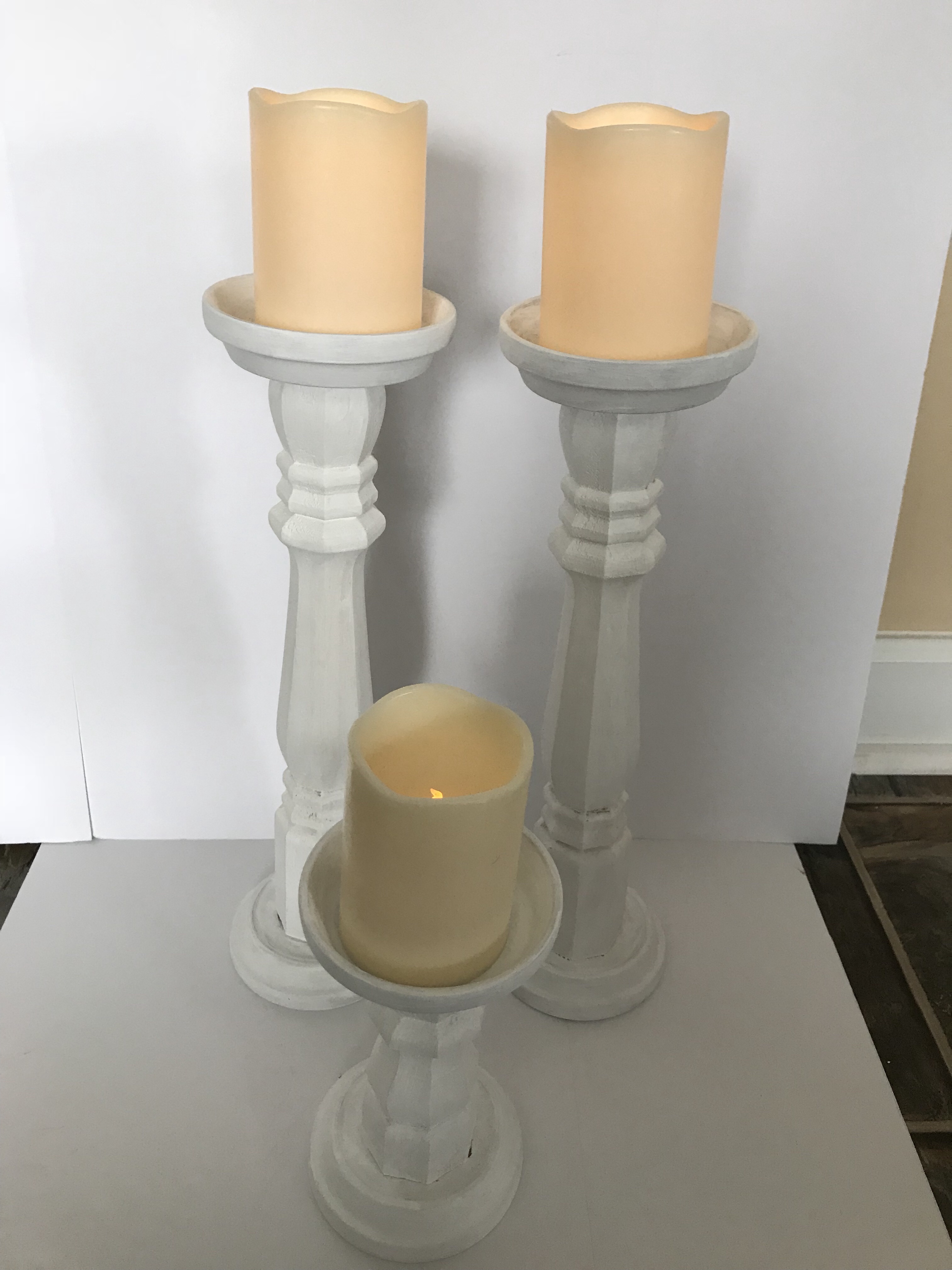 I’m happy with how they turned out, but I’m thinking of cutting one of the taller candlesticks down so I’ll have three varying sizes. I love the look of these and I know they’ll look great on our mantle.