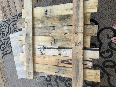 I had a few planks of wood left over from that project, but I didn’t want to throw it away. Burning treated wood is a no-no here, and we are under a burn ban due to the heat. What to do?