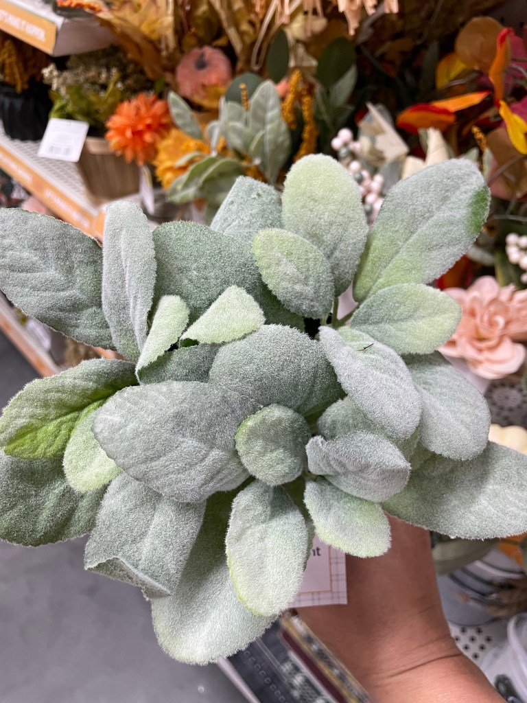 There are so many pretty floral options at DG right now. It’s available for different prices, but I liked this lamb’s ear for $4. I haven’t bought any yet, but I bet I will soon.