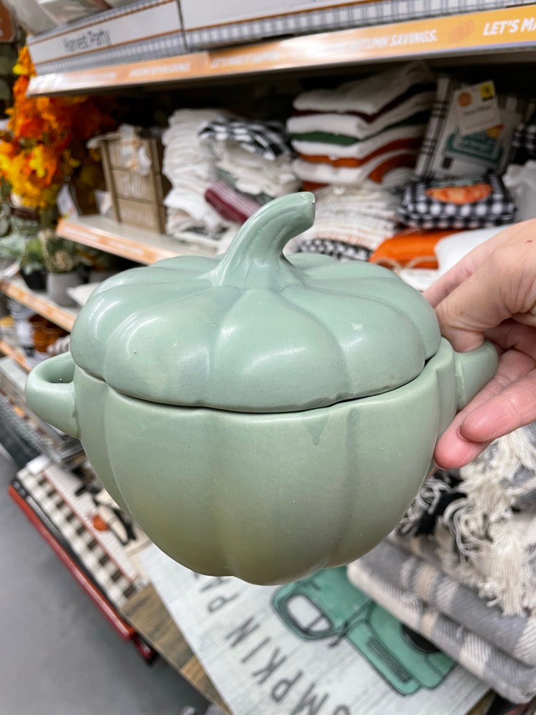 6. Glass pumpkin bean crock, $8