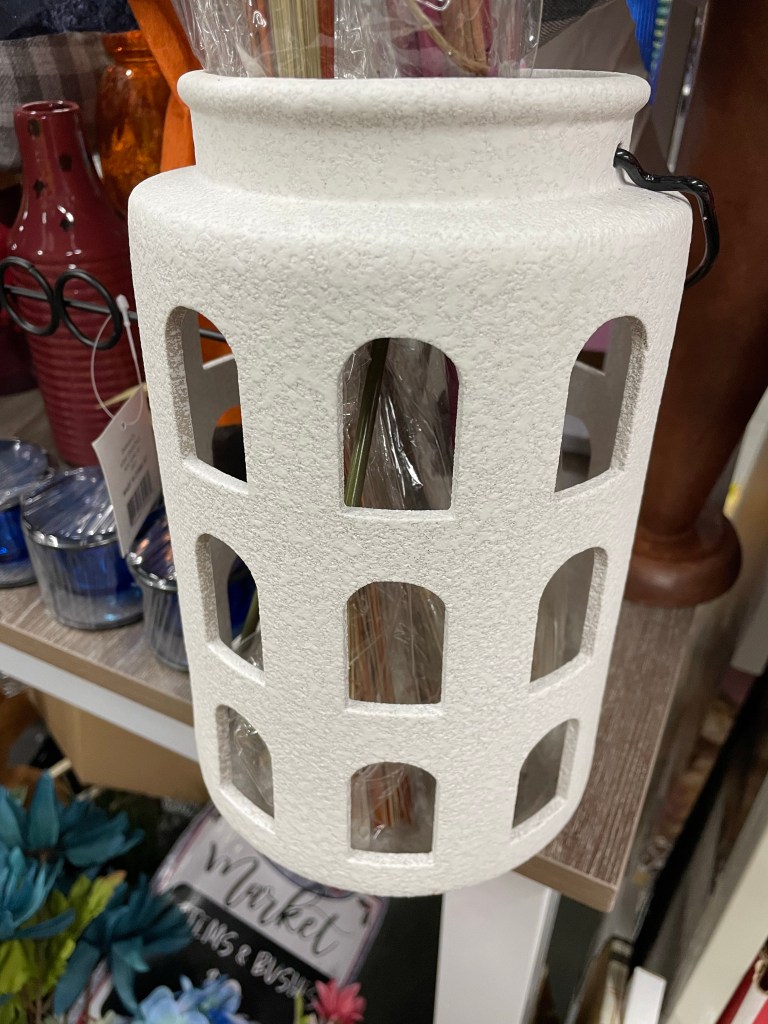 5. White “stoneware” lantern, $15