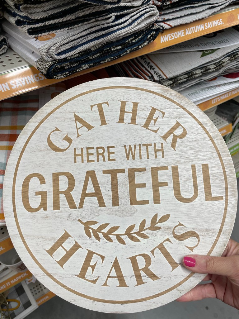 This sign is cute, and it’s non-exclusive enough to be used year round. Hang it up in your dining room or living room, or use it in the center of a wreath. I’ve almost bought this one a few times.