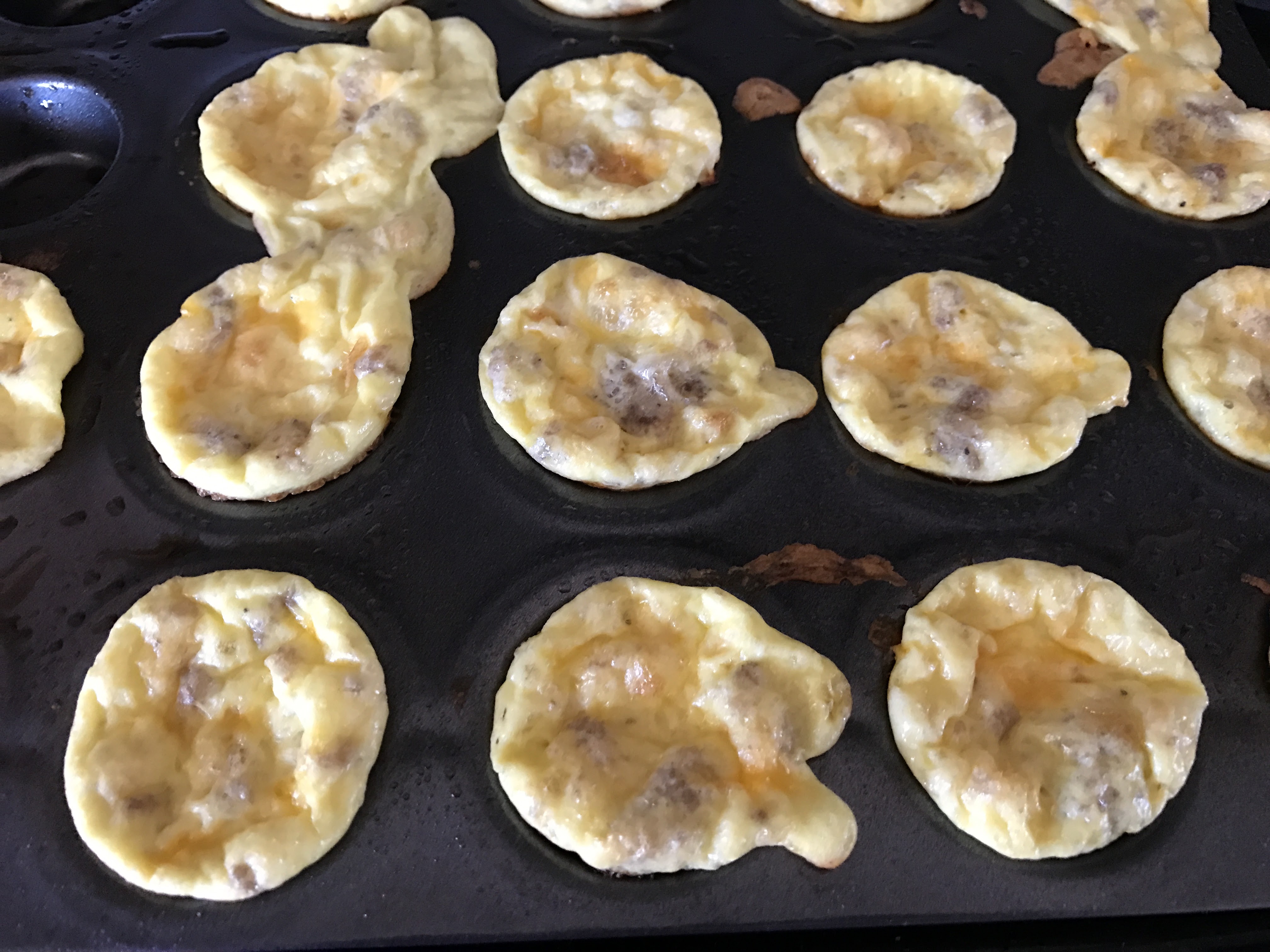 The “mufflet” is basically an omelet made in a muffin tin. I love it because it’s quick, easy, and you can add anything you want to them. If I were cooking them for me, I’d add onion and peppers, but my kids and hubby are picky. For them, I add only cheese and sausage.
