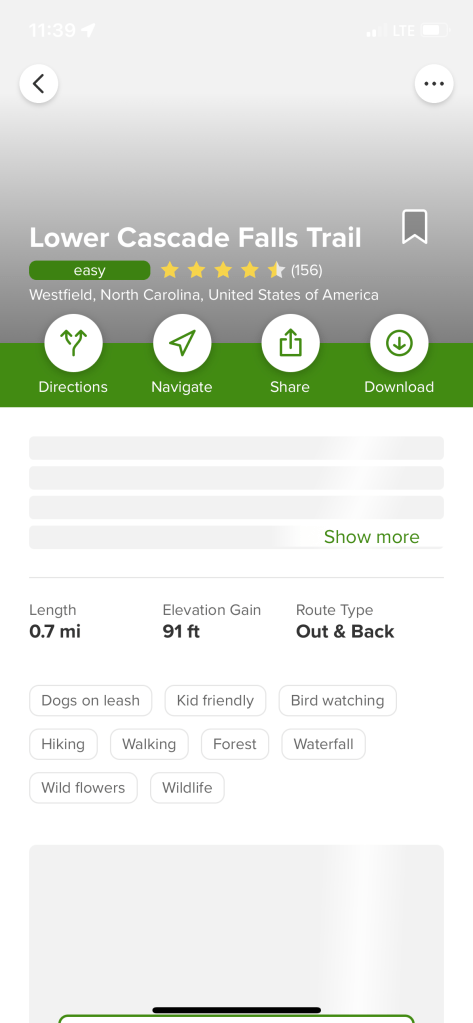 Our AllTrails app suggested a short, easy trail, which was necessary since we weren’t exactly dressed or prepared for a hike.