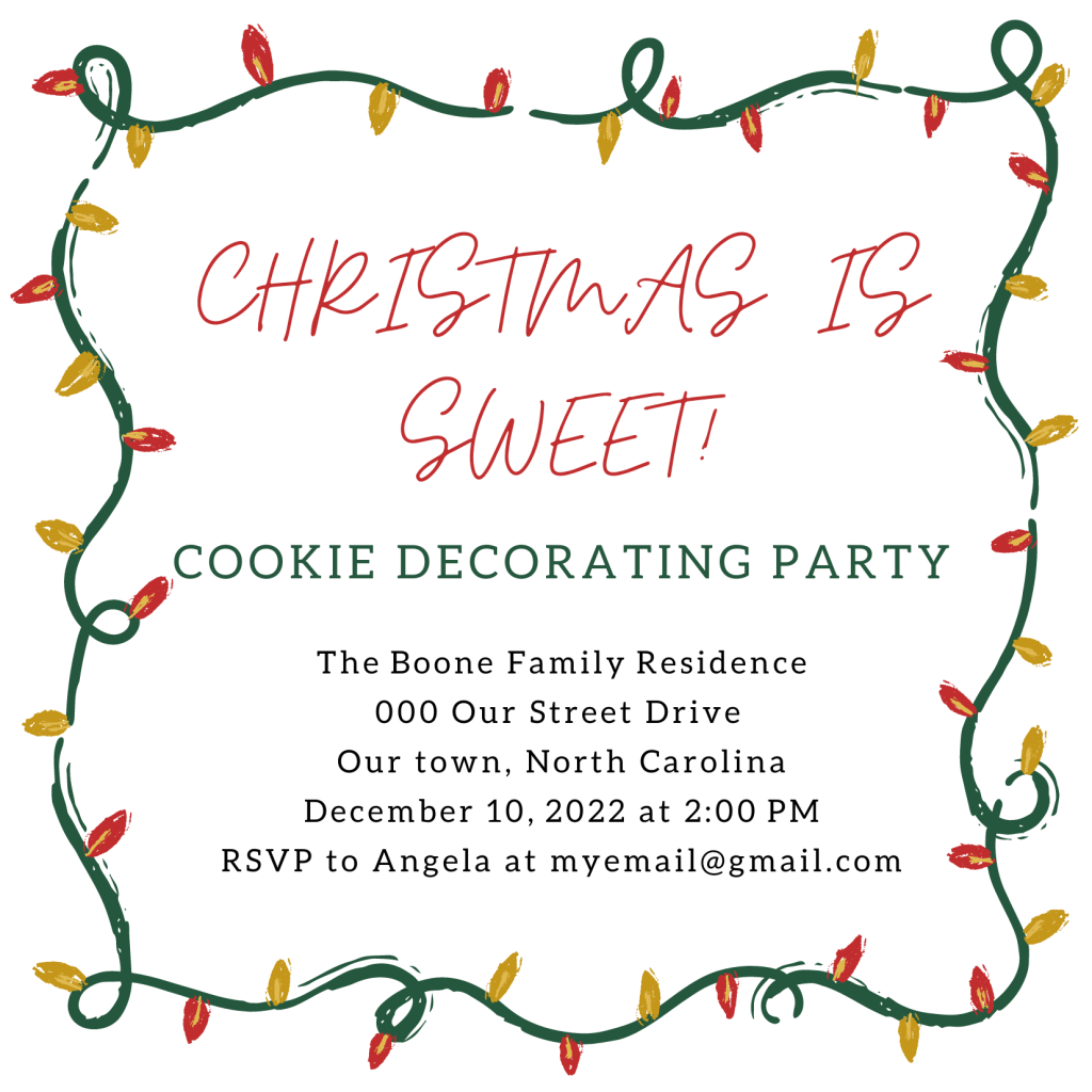 You may play dirty santa, decorate cookies, make Christmas crafts together, or even have a photobooth area with fun costumes and props. Any of those would be a hit- It’s totally up to you!
