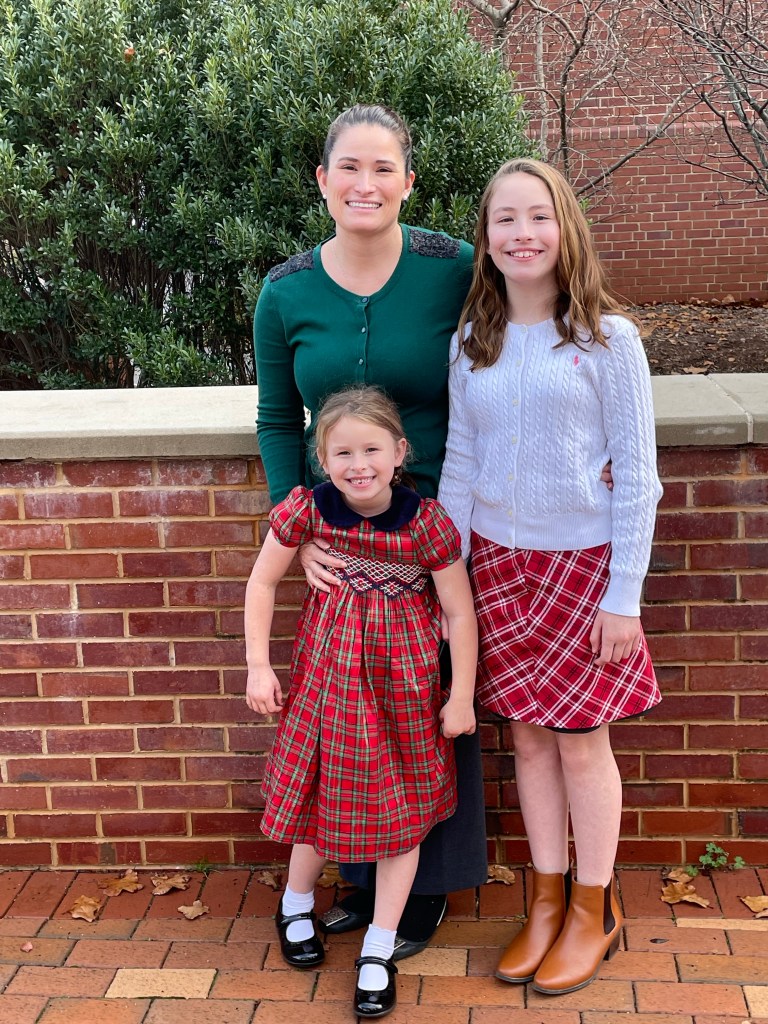 Color coding your outfits make your photos look more put together. While my green sweater seems out of place here, the girls are color coordinated and cute together.