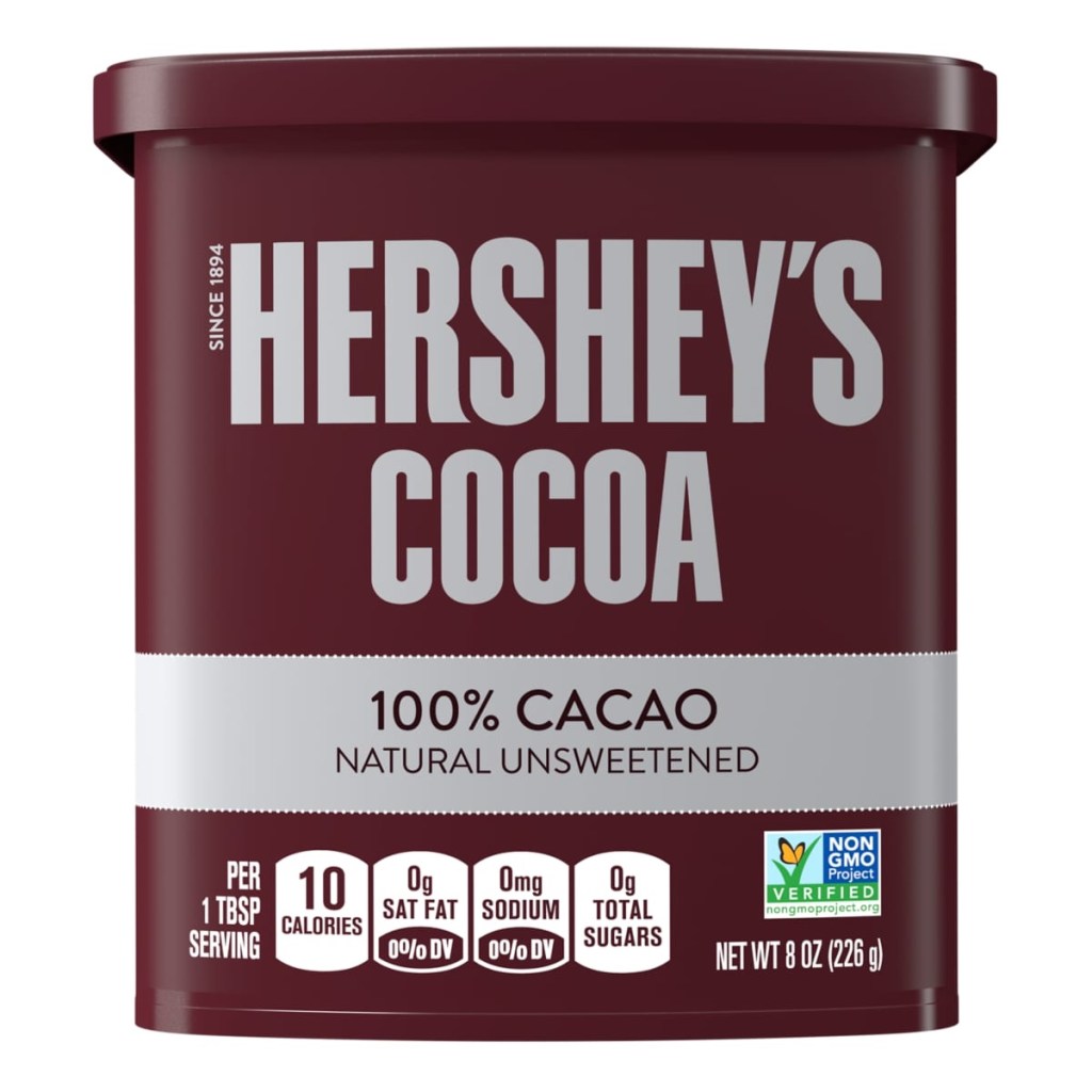 All you need is Hershey’s cocoa, salt, sugar, hot water, milk and vanilla extract.