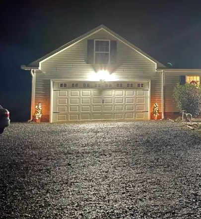 Last year, we added these lighted porch trees to the yard. They were small pre-lit trees that I added more lights to. We typically put a wreath on that upstairs window but this year, we did not.