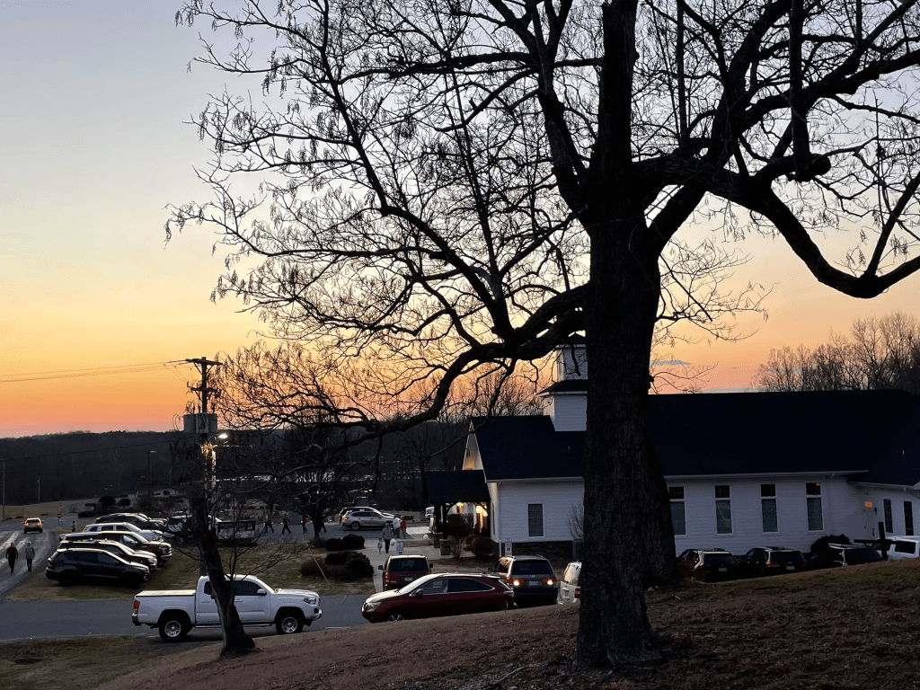 We also came down with a stomach bug, and went to a wonderful Valentine’s Day dinner at our church. This is our church at sunset, as seen from the historical church on the hill. It’s a beautiful place, but it’s filled with loving people who love the Lord. We are truly blessed.
