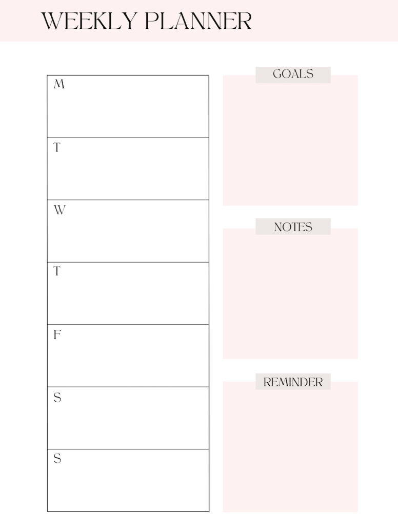 Your agenda includes a monthly calendar for all 12 months, a finance tracker for each month, a year-long savings tracker, birthday list, and five weekly planner pages per month.