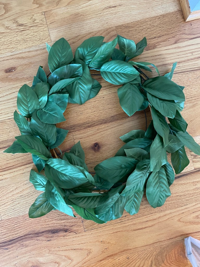 I started by wiring the greenery to the wreath form. You have four rows on the wreath form, so I chose to wire greenery to all four rows. It’s time consuming but it makes your wreath thicker.