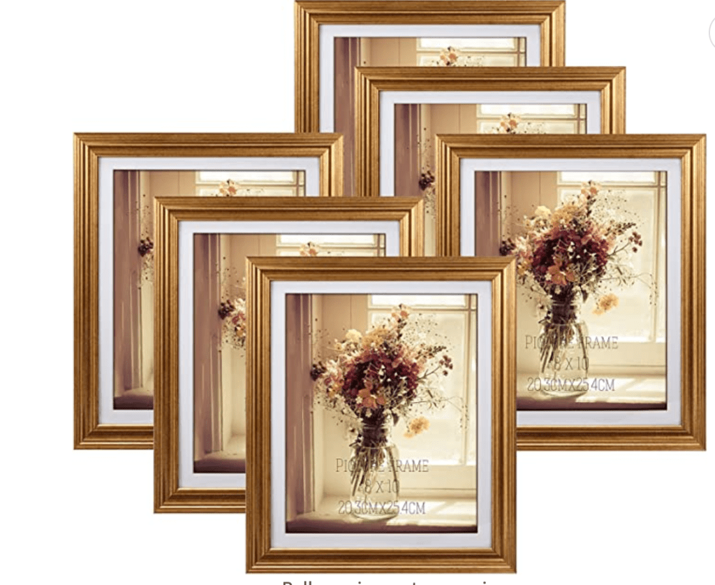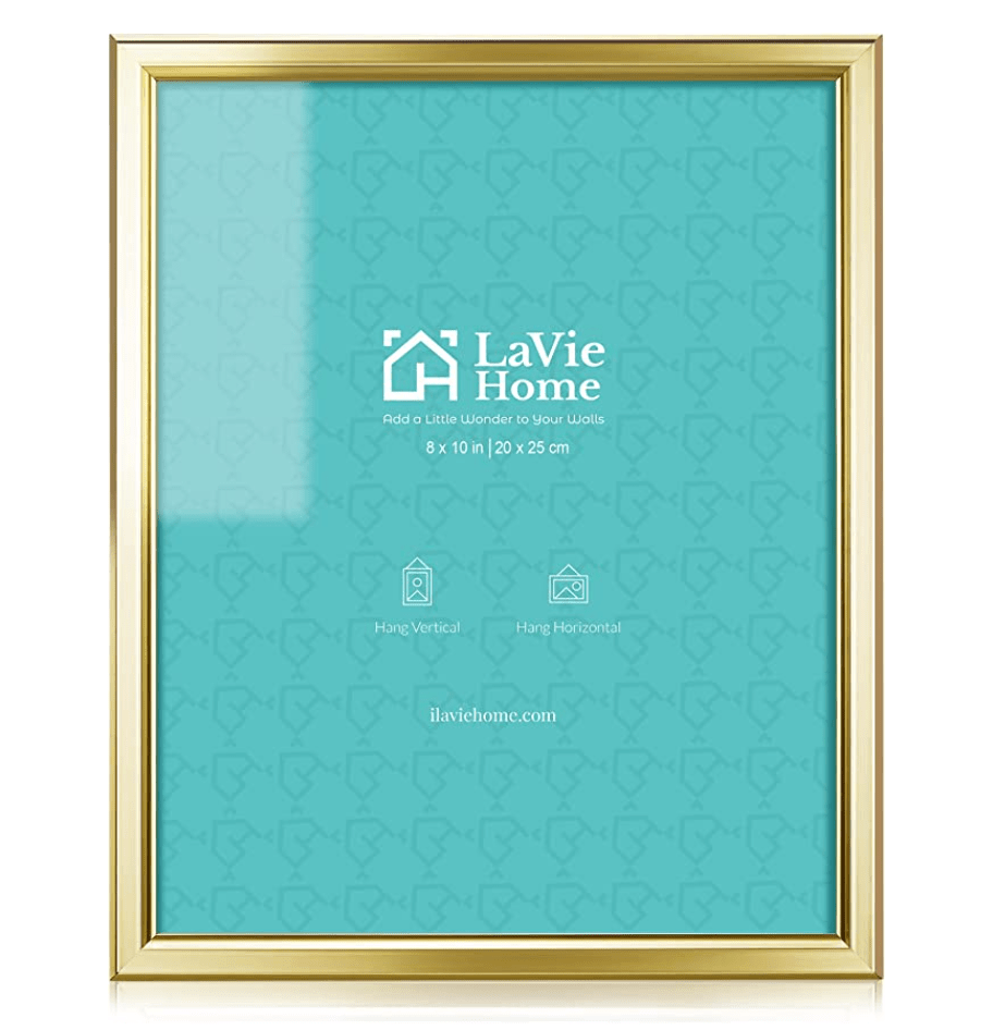 I wasn’t able to find the exact gold frame I have, but I did find these at Michael’s (left) and a six pack of gold frames on Amazon. Both are very cost effective options.