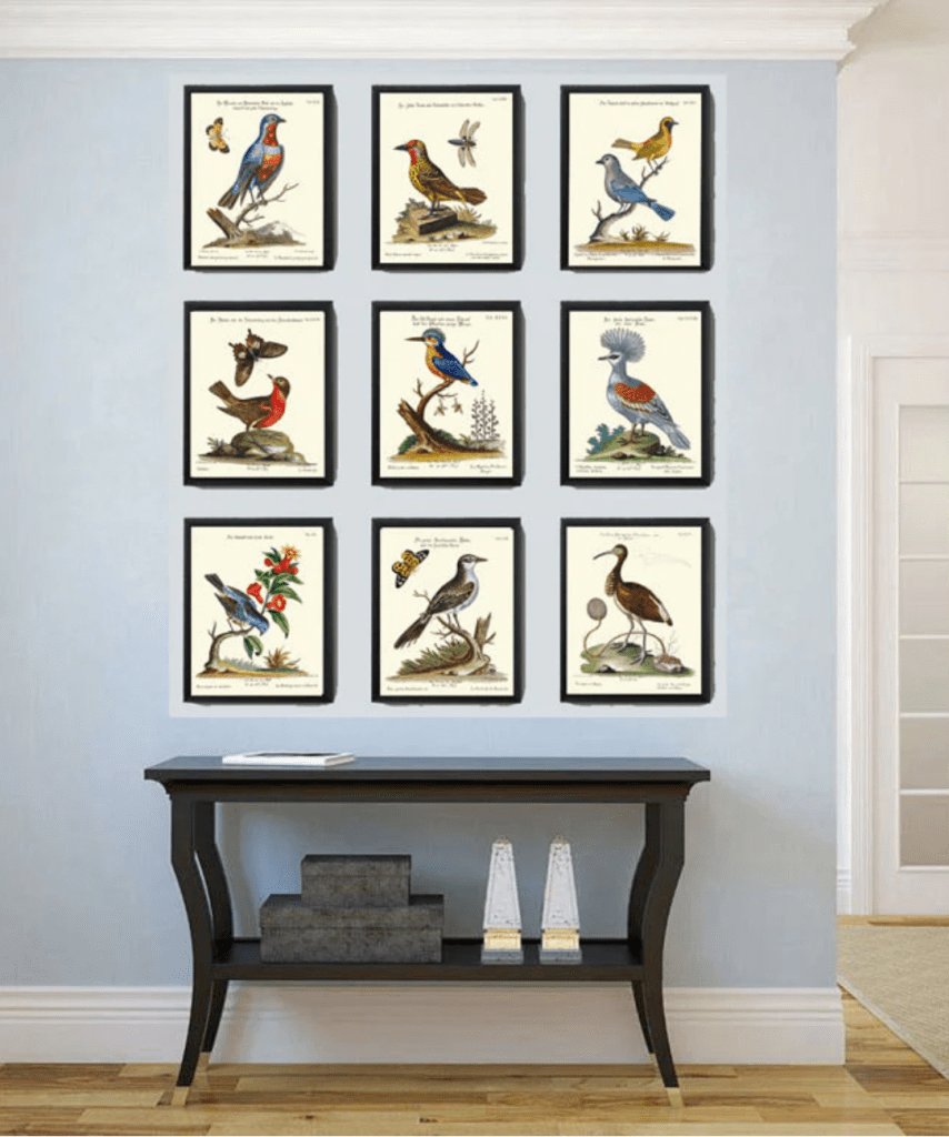 Bird and floral gallery walls are very much in style right now- in fact, they’re kind of timeless.