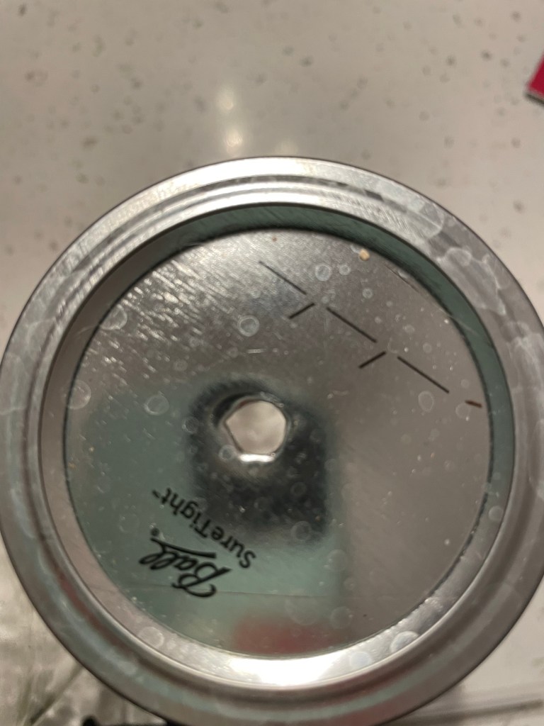 Start by finding the jar you want and marking the lid where you want to put the dispenser. Then, make a hole with a tin punch or a drill bit. CAUTION: wear gloves and eye protection. Do not allow children to do this.