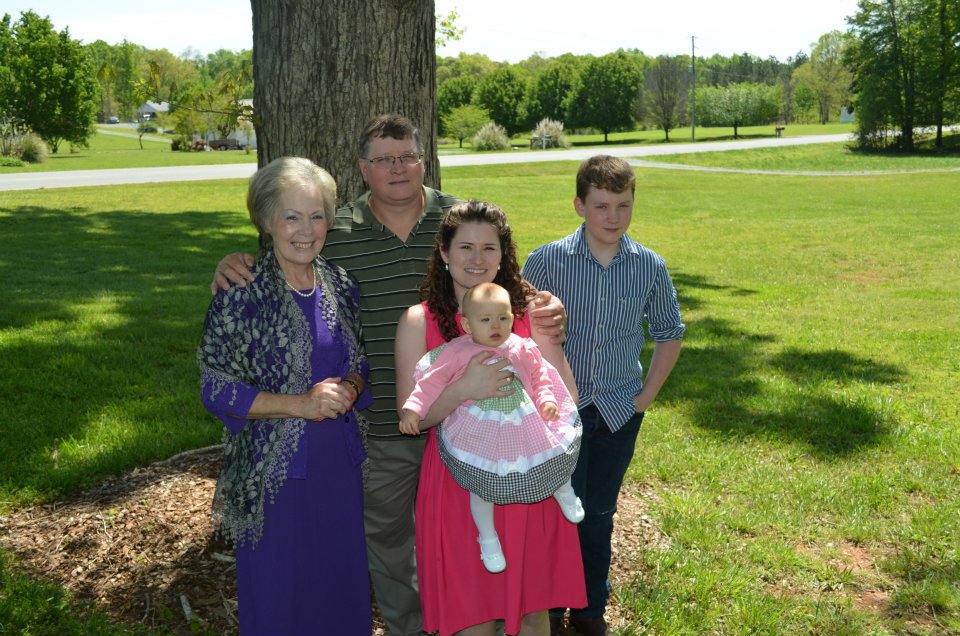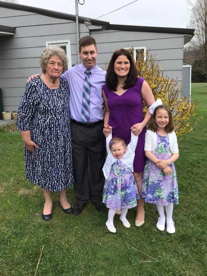 Taking pictures with a toddler is never easy. A then two year old youngest daughter did not have time to stand still for this picture with her sister, parents and great grandma. It was all I could do to hold on to her and keep her from running away.