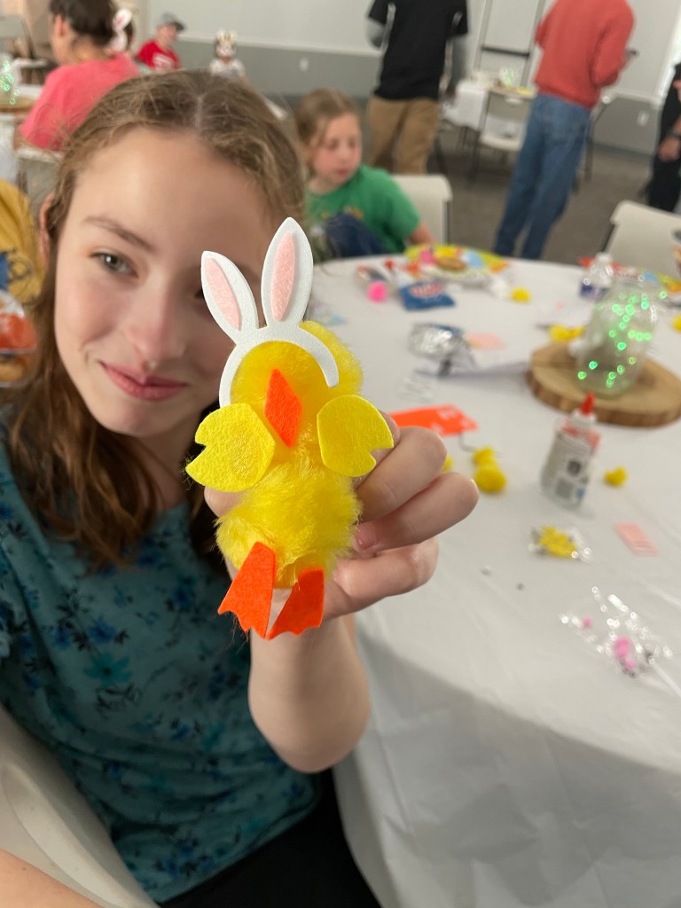 The kids celebrated Easter by attending our Easter Egg-stravaganza at our church. They made cute crafts and hunting for Easter eggs.