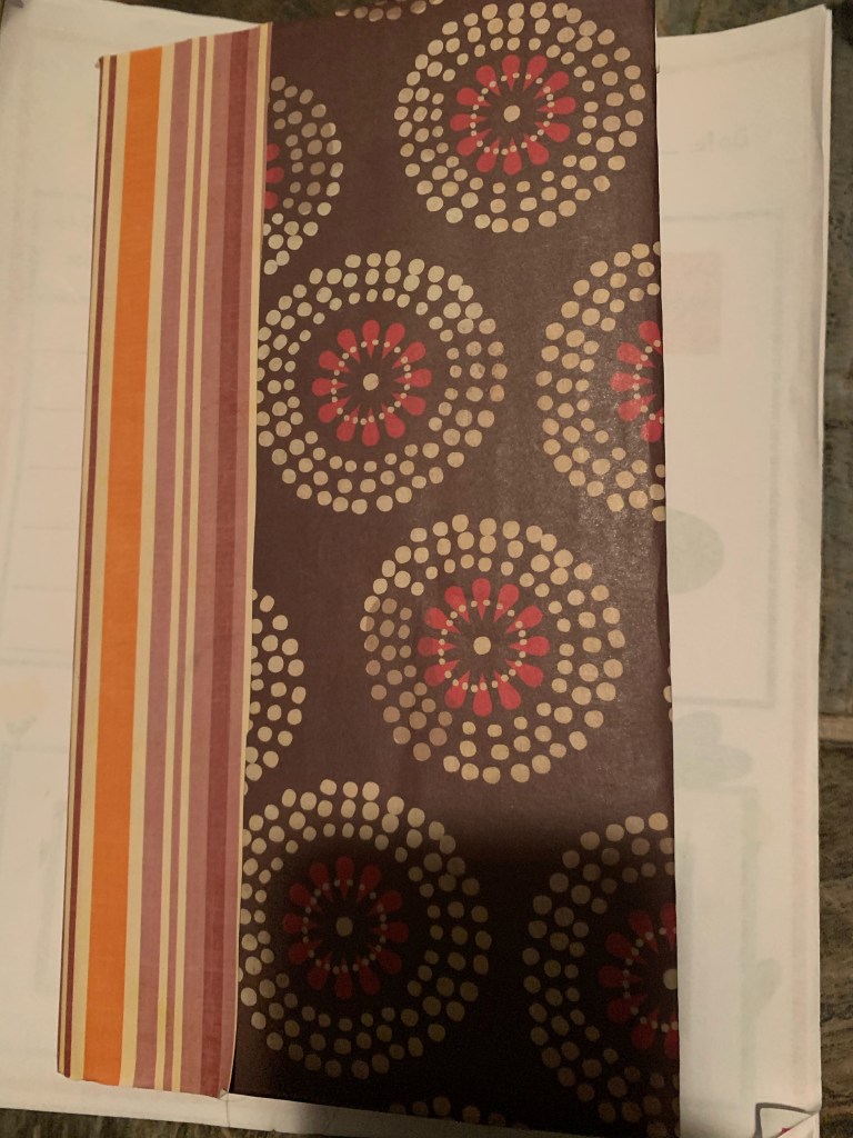 First, cut the cardboard to your desired size and cover them with the scrapbook paper of your choice using Mod Podge for adhesive.