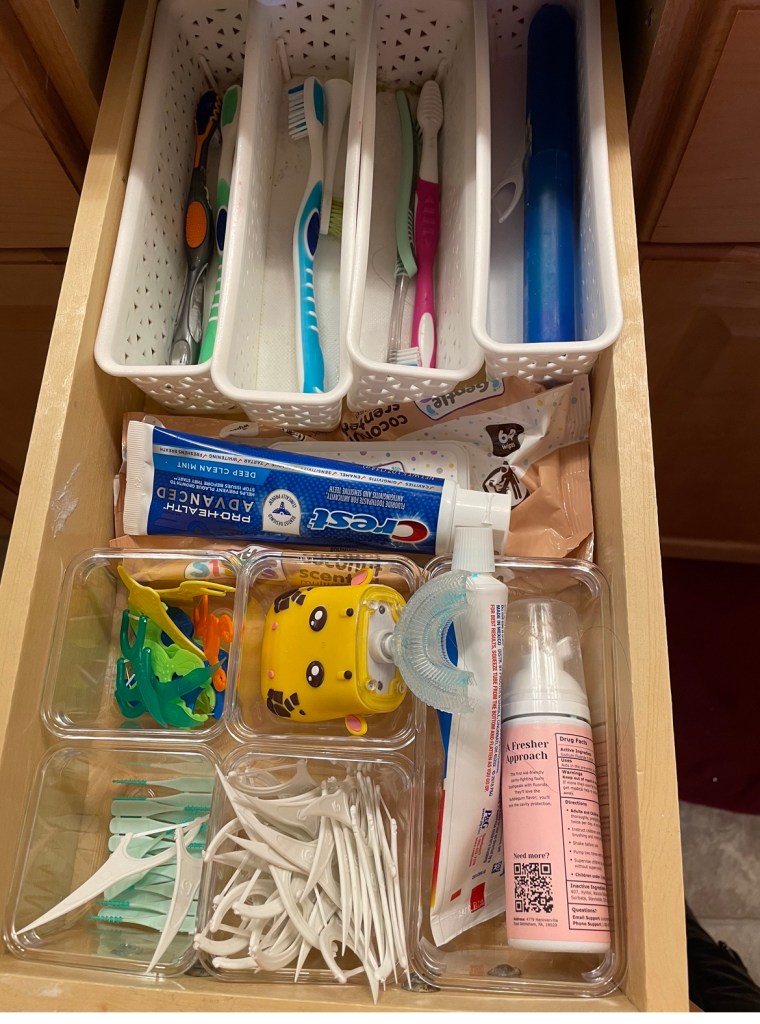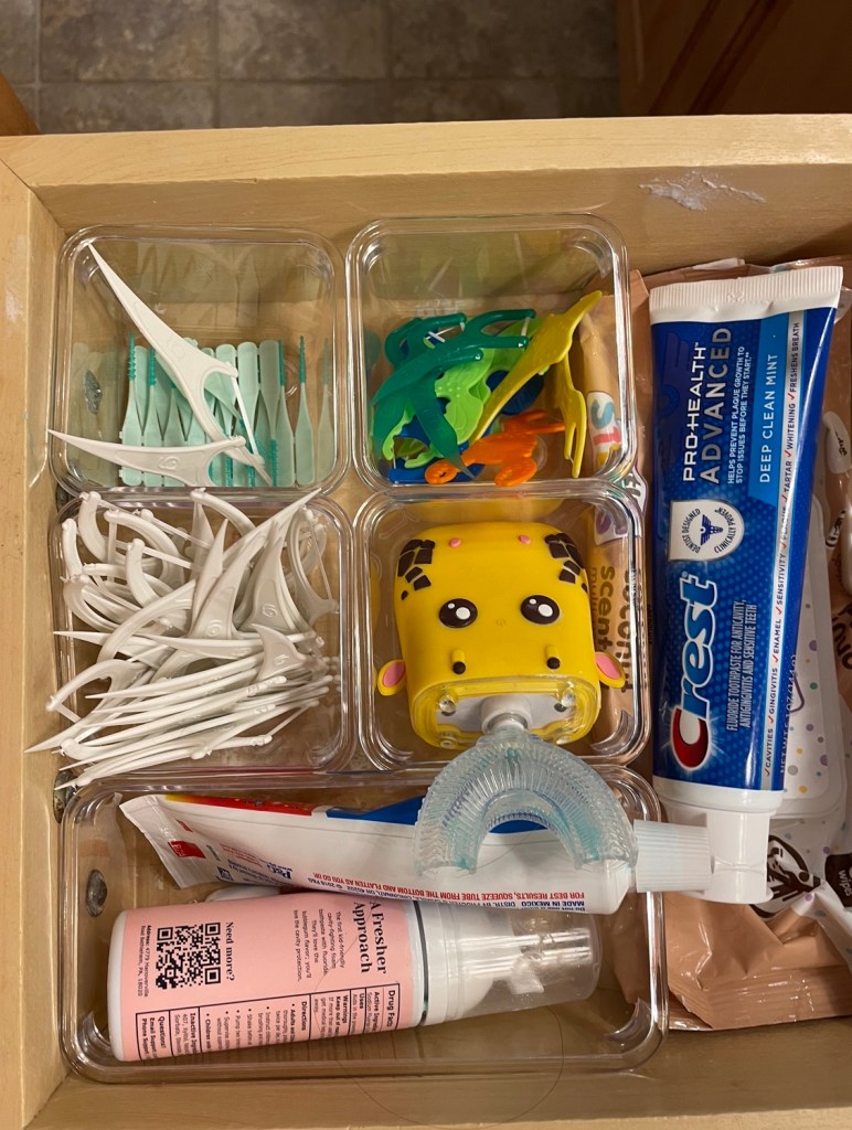 I used them in ours and the kids’ bathrooms to organize our toothbrush drawer.