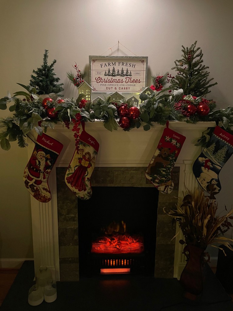 Have you got a pretty fireplace at your home? A pretty bridge or a grove of trees? Maybe a front porch that you decorate nicely? Using a spot at your home makes your photo more personal.