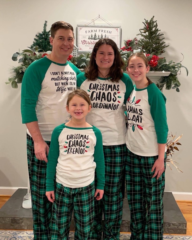 You don’t have to go all out with matching PJs, but having coordinating colors makes your pictures look better. You don’t even have to match 🙂