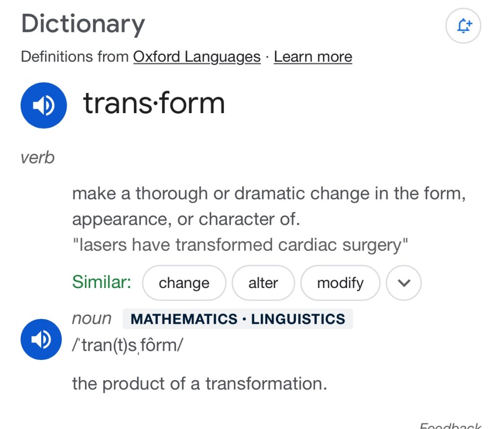 We decided a positive way to focus on our changes (meaning the ones we successfully made and the ones we failed) was to continue our process. We chose the word “transform.”