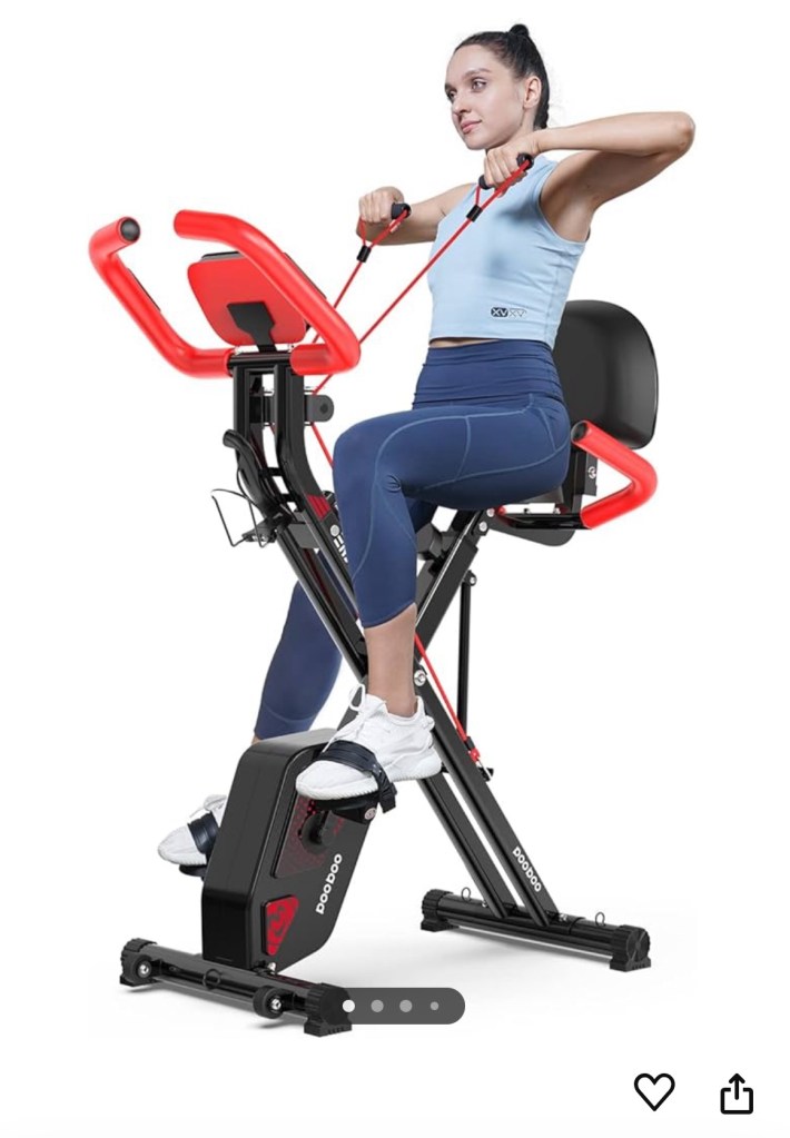 This exercise bike has a small footprint and folds up when it’s not in use. If you’re interested in a great stationery bike that isn’t expensive, this is a great choice. I have this bike myself. Get it here.