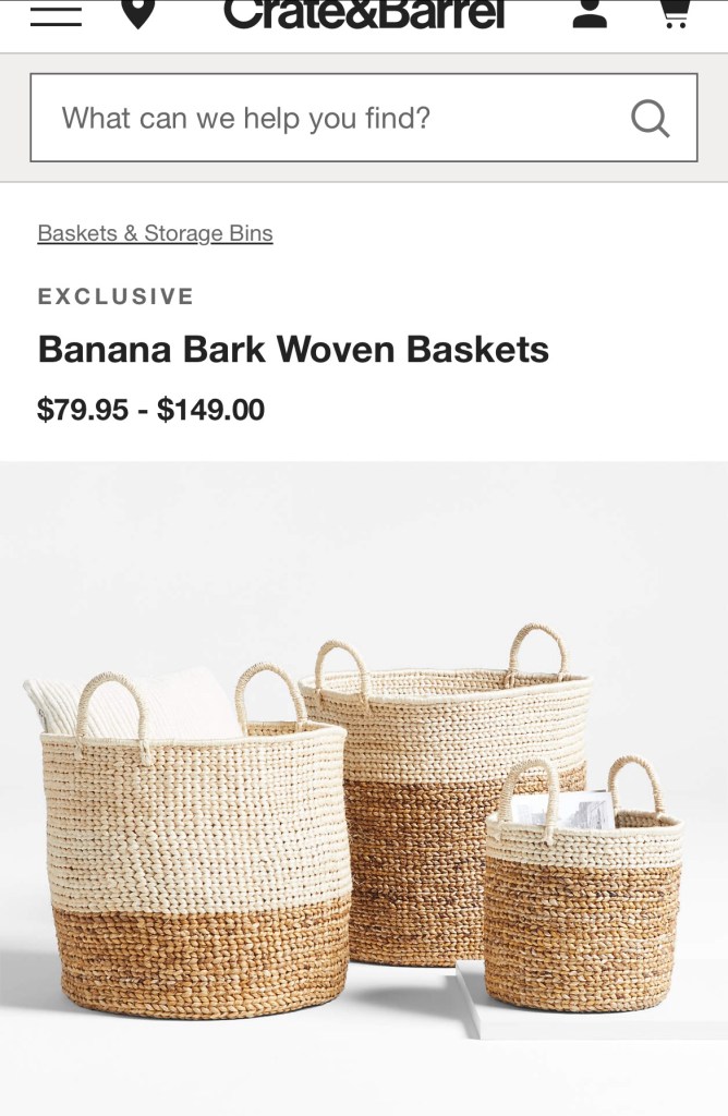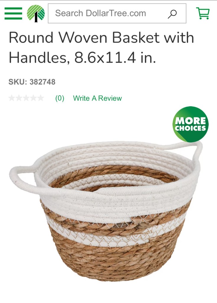 The basket on the left is $3 at the Dollar Tree, while the Crate and Barrel version is $80-$150. They’re not exactly alike and the DT version is smaller, but you can still get basically the same concept for a lot less.